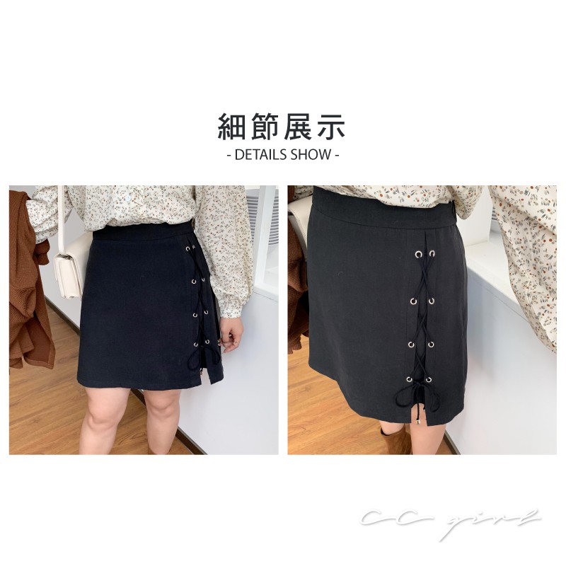 CCGIRL中大尺碼 韓風造型交叉綁帶短裙(後鬆緊+一般內裡)-共2色-適M~5L《90487》大尺碼女裝 中大尺碼短裙經典黑,L|經典黑,XL|經典黑,2L|經典黑,3L|經典黑,4L|經典黑,5L|布朗尼咖,L|布朗尼咖,XL|布朗尼咖,2L|布朗尼咖,3L|布朗尼咖,4L|布朗尼咖,5L|經典黑,M|布朗尼咖,MCCGIRL中大尺碼女裝
