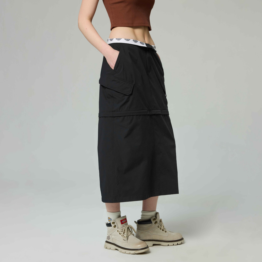 Dickies女款黑色內腰Logo印花拉鍊可拆式設計長裙|DK0A887LBLK25|26|27|28|29Dickies Taiwan 官方直營店