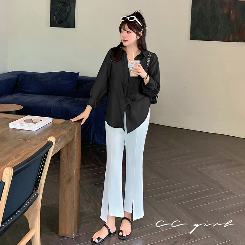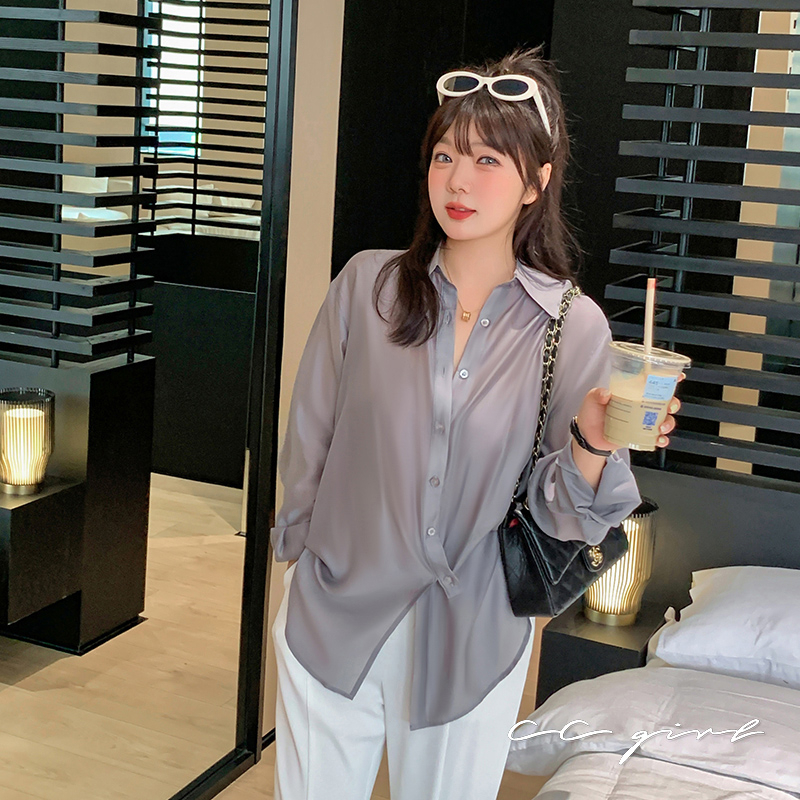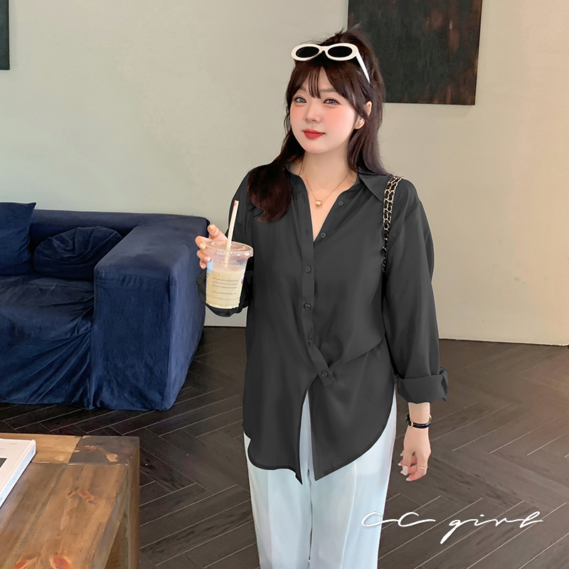 CCGIRL中大尺碼 法式慵懶風氣質設計感翻領襯衫-共2色-適L~5L《 20522》大尺碼女裝 中大尺碼襯衫