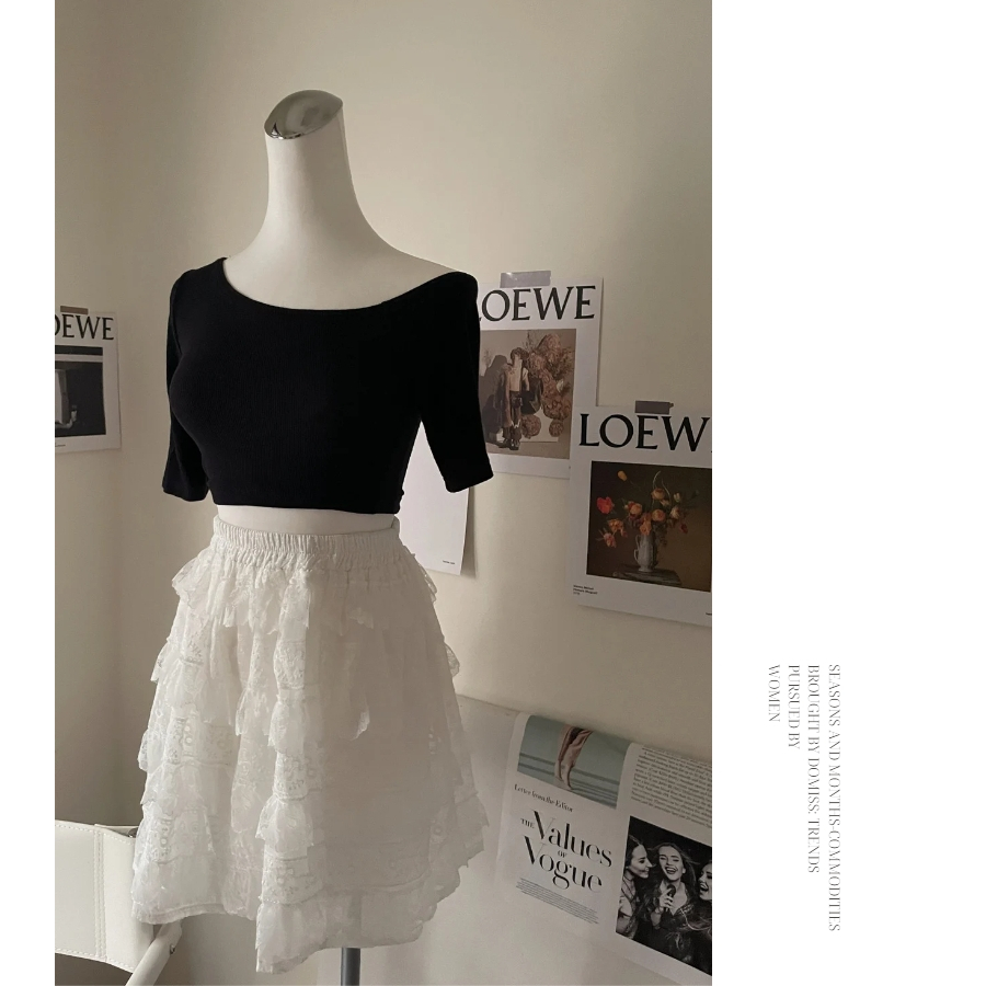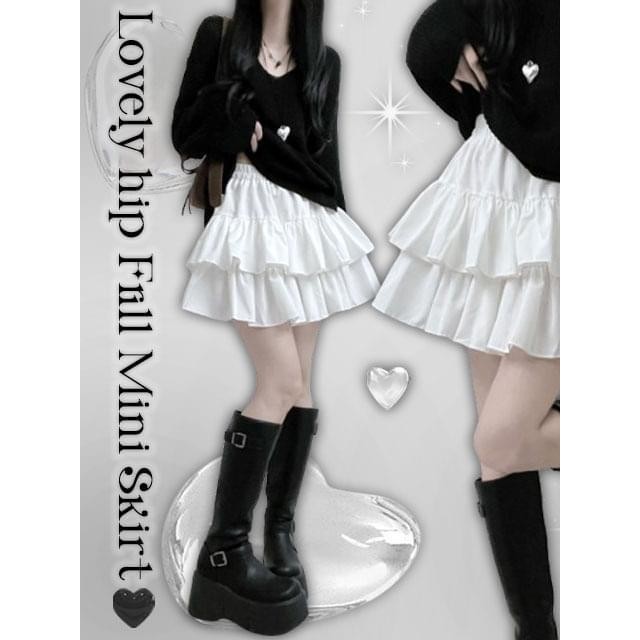 Codibook|韓國 ccomeng 可愛兩層荷葉邊鬆緊褲裙[預購]裙子 女裝黑色,one size|白色,one sizeCodibook 韓國女裝購物平台