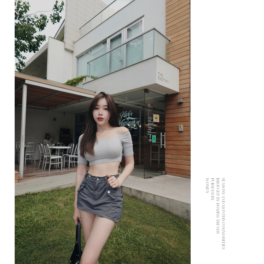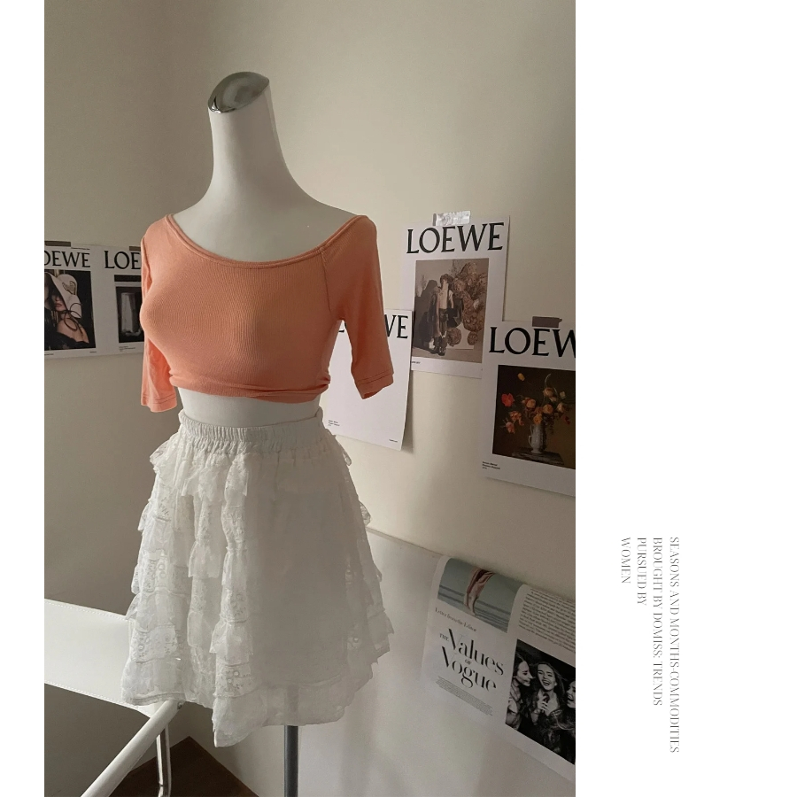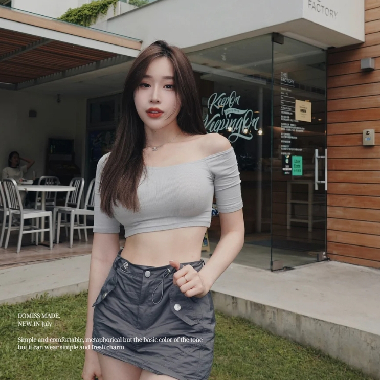 【DOMISS自訂】歐美辣-斜肩歐美短袖上衣-3色 貼身上衣 (現貨)灰色|橘色|黑色T-shirtsDOMISS 朵蜜絲