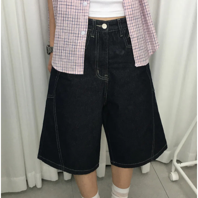 Codibook|韓國 EEZEE 街頭感車縫線百慕達牛仔短褲DE029[預購]短褲 牛仔短褲 女裝黑色,S|黑色,M|黑色,LShortsCodibook 韓國女裝購物平台