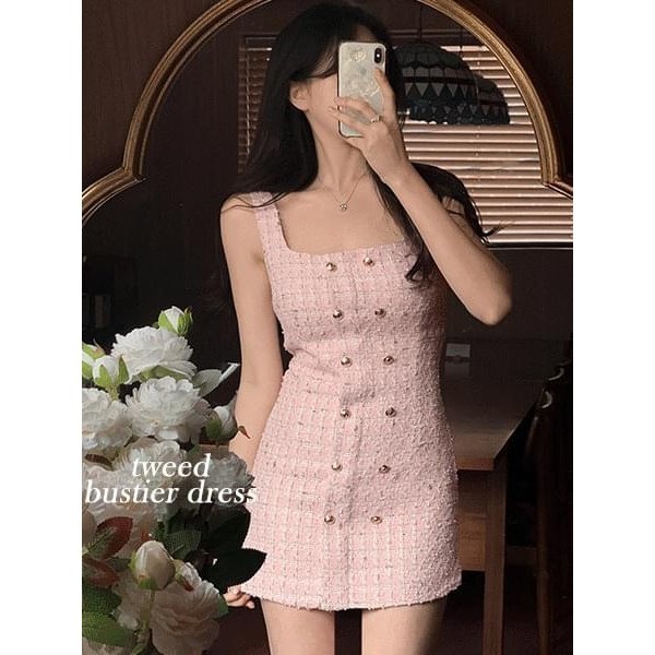 Codibook|韓國 secon’de secon 粉色格紋方領連身短裙[預購]迷你短洋裝 吊帶裙 女裝黑色,M(55)Codibook 韓國女裝購物平台