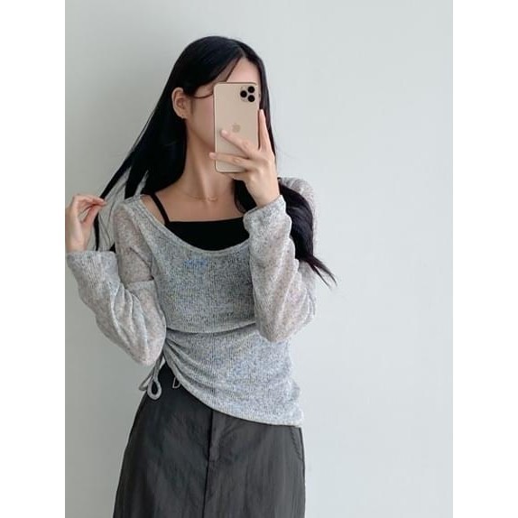 Codibook|韓國 dangosister 透膚長袖網眼針織T恤[預購]長袖上衣 T恤 女裝象牙白|灰色|黑色T-shirtsCodibook 韓國女裝購物平台