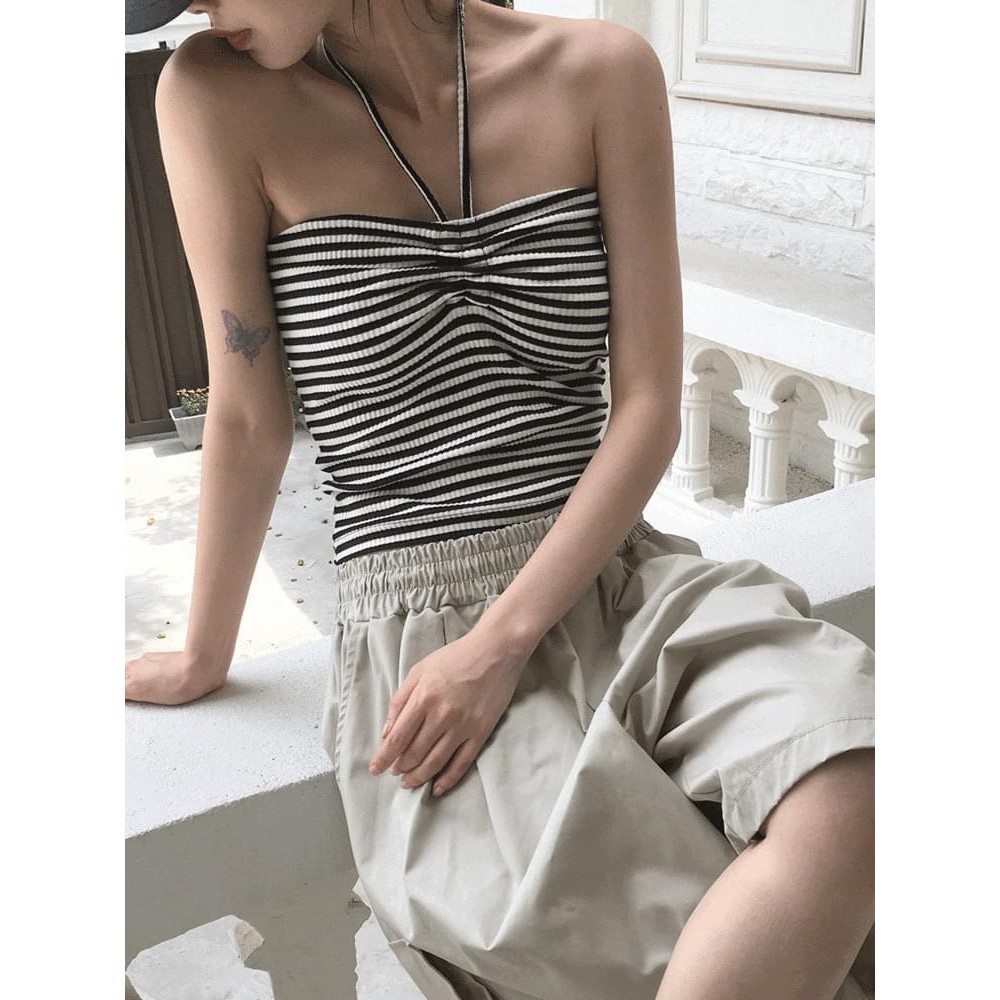 Codibook|韓國 wonderwonder 細肩帶抽繩式露肩挖背條紋上衣[預購]無袖 平口背心 女裝黑,FREE|灰色,FREETanks & CamisolesCodibook 韓國女裝購物平台