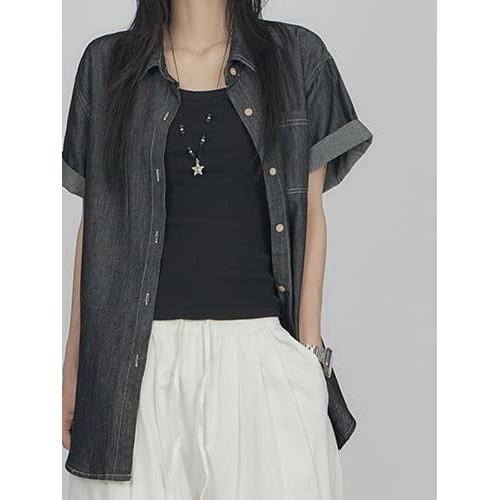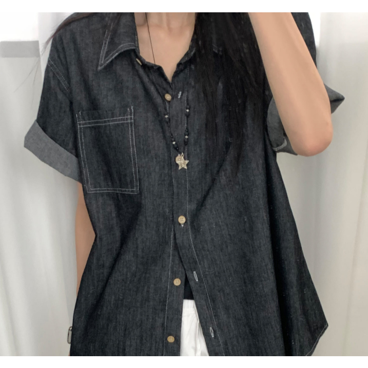 Codibook|韓國 EEZEE 寬鬆牛仔短袖襯衫SH013[預購]套裝 女裝Black Denim,FreeIndividual SetsCodibook 韓國女裝購物平台