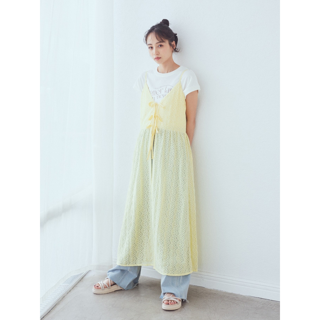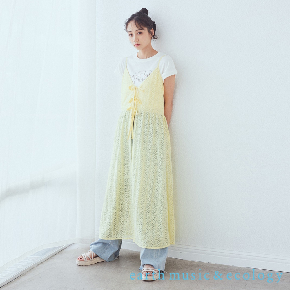 earth music&ecology 花朵蕾絲蝴蝶綁結吊帶洋裝(1K43L0H0730)本白F|黑色F|黃色Fearth music&ecology Select Store