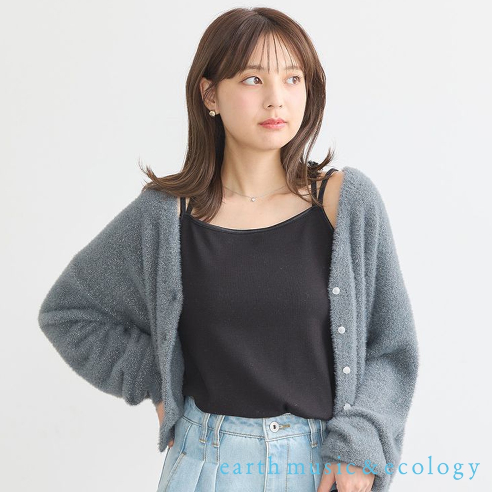 earth music&ecology 光澤感金蔥毛絨針織V領開襟罩衫(1N44L2D0100)淡灰色F|炭灰色F|淺米白F|藍色Fearth music&ecology Select Store