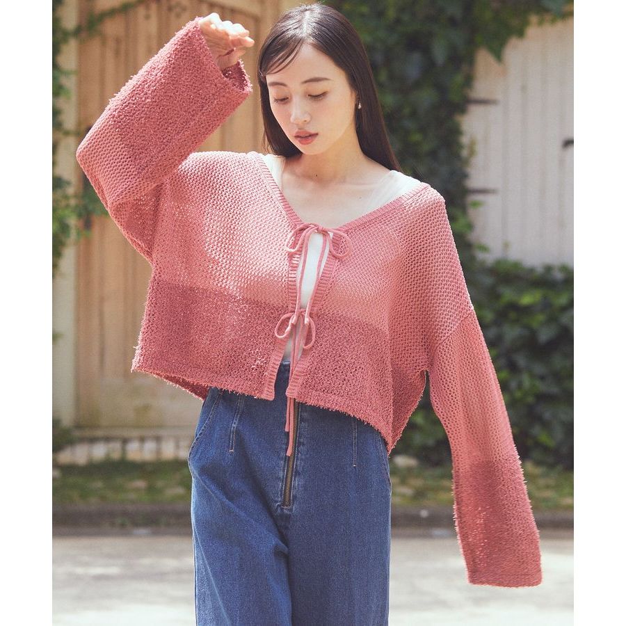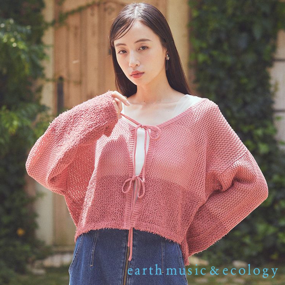 earth music&ecology 鏤空網眼開襟綁結V領罩衫(1L43L2D0700)象牙色F|炭灰色F|粉紅色F|灰藍色FCapesearth music&ecology Select Store