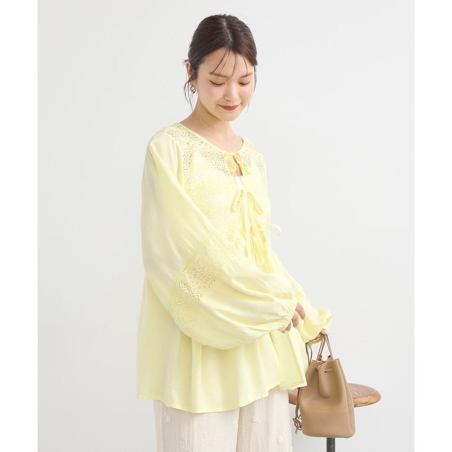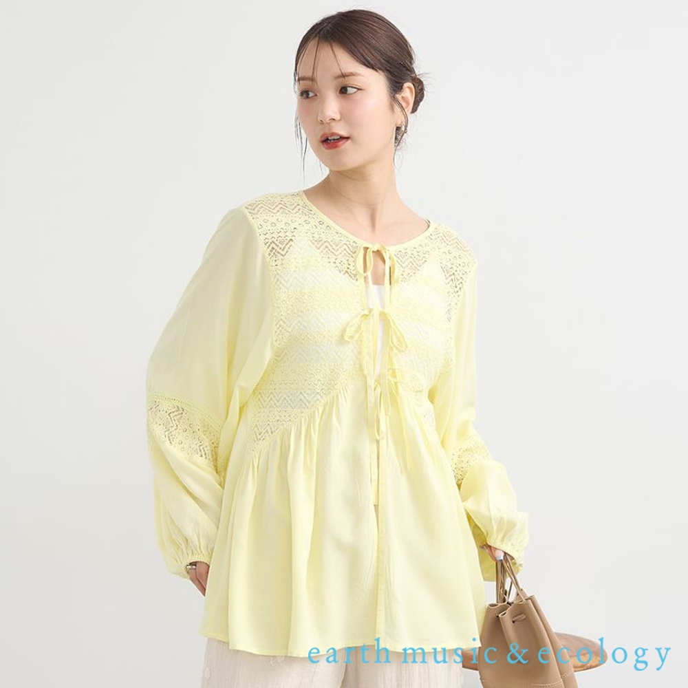 earth music&ecology 鏤空蕾絲拼接綁結長版縲縈襯衫(1K52L0A0300)本白F|黑色F|黃色F|薄荷綠FShirts & Blousesearth music&ecology Select Store
