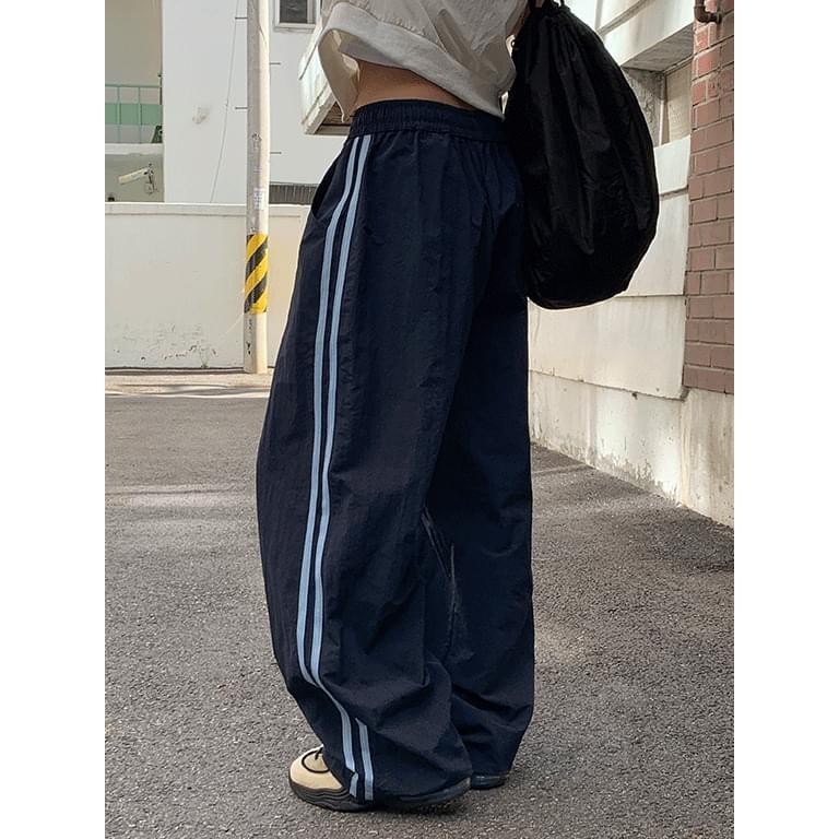 Codibook|韓國 DAILYJOU 斜紋布闊腳運動長褲[預購]長褲 闊腿褲 女裝深藍色(海軍藍)|棕色(咖啡色)PantsCodibook 韓國女裝購物平台