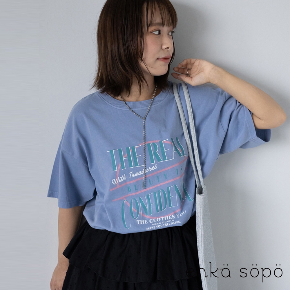 ehka sopo 醒目英文標誌印花短袖休閒T恤(0F000949010)本白F|炭灰色F|薄荷綠F|淡青色FT-shirtsearth music&ecology Select Store