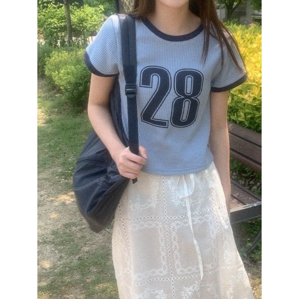 Codibook|韓國 HEYLADY 數字紋理圓領短袖T恤[預購]短袖上衣 T恤 女裝天空藍,FREE|灰米白色,FREET-shirtsCodibook 韓國女裝購物平台