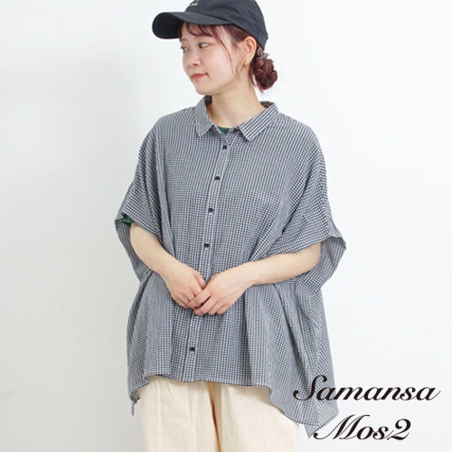 Samansa Mos2 素色/格紋翻領寬袖設計休閒襯衫(FL46L0G0680)本白F|炭灰色F|黑色F|米色F|淡青色FShirts & Blousesearth music&ecology Select Store