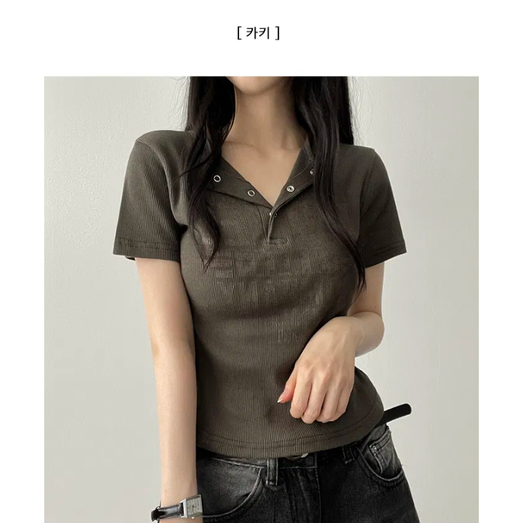 Codibook|韓國 HIJJOO 新款坑條V領短袖T恤[預購]短袖上衣 T恤 女裝白鹽色|米褐色|天空藍|深灰色|卡其色T-shirtsCodibook 韓國女裝購物平台