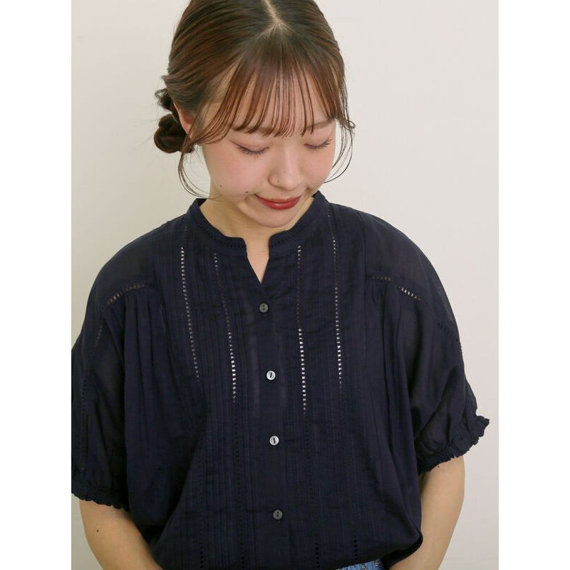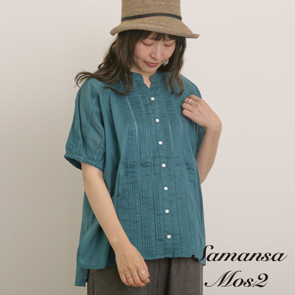 Samansa Mos2 直紋褶襉蕾絲造型短袖排釦襯衫(0F001031810)本白F|紅色F|綠色F|深藍色FShirts & Blousesearth music&ecology Select Store