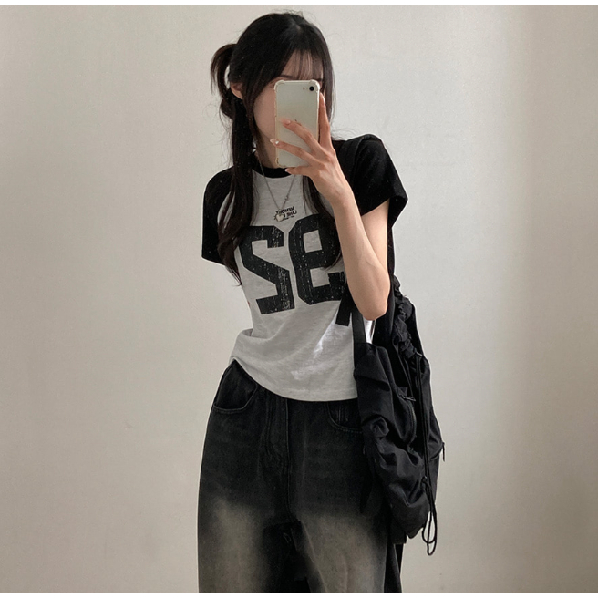 Codibook|韓國 gifteabox 數字拼色圓領短版T恤[預購]短袖上衣 T恤 女裝燕麥,free|灰米白色,free|海軍藍,free|黑色,freeT-shirtsCodibook 韓國女裝購物平台