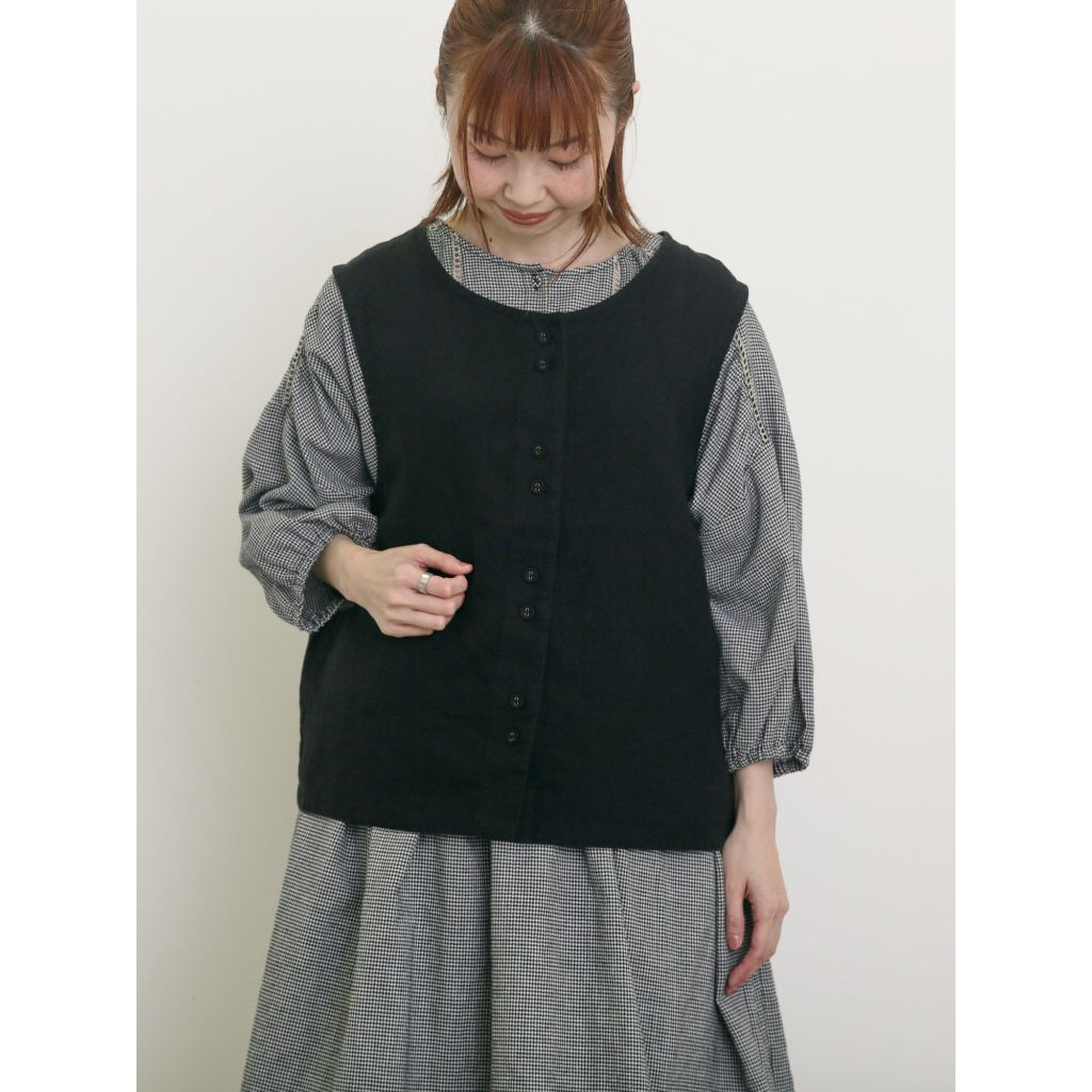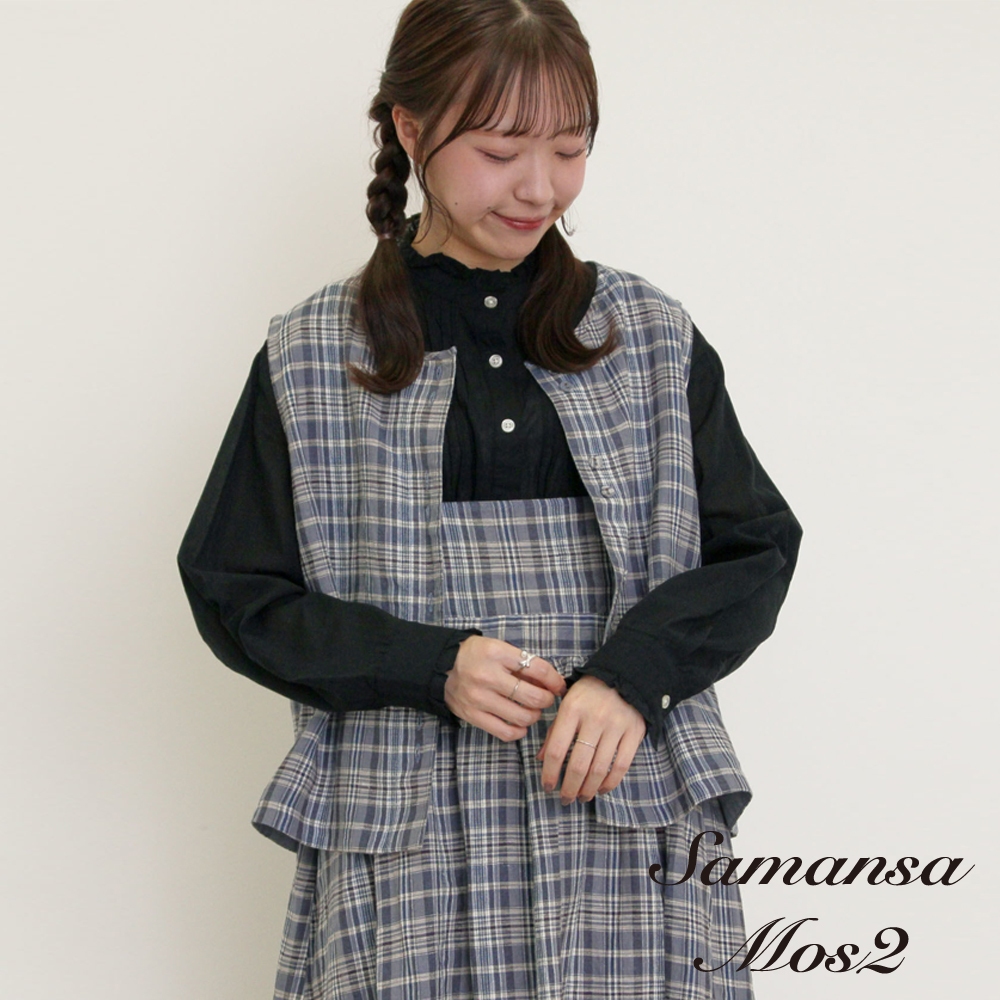 Samansa Mos2 【Cross×Linen】素面/格紋亞麻排釦圓領背心(0F000726710)黑色F|米色F|綠色F|深藍色FVestsearth music&ecology Select Store