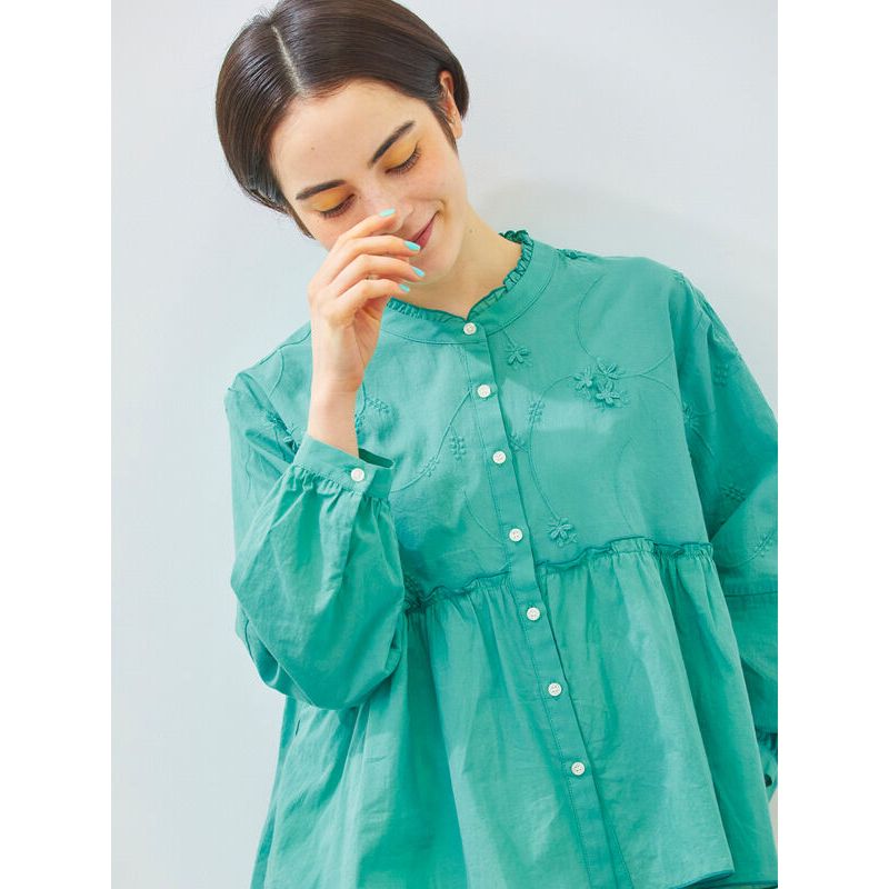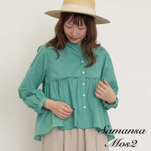 Samansa Mos2 氣質荷葉摺邊立體花卉刺繡立領襯衫(0F000670310)象牙色F|本白F|黑色F|綠色FShirts & Blousesearth music&ecology Select Store