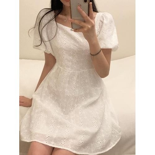 Codibook|韓國 peachmode 方領簍空蕾絲澎袖短版連身裙[預購]迷你短洋裝 婚紗 女裝象牙白,free|黑色,freeCodibook 韓國女裝購物平台