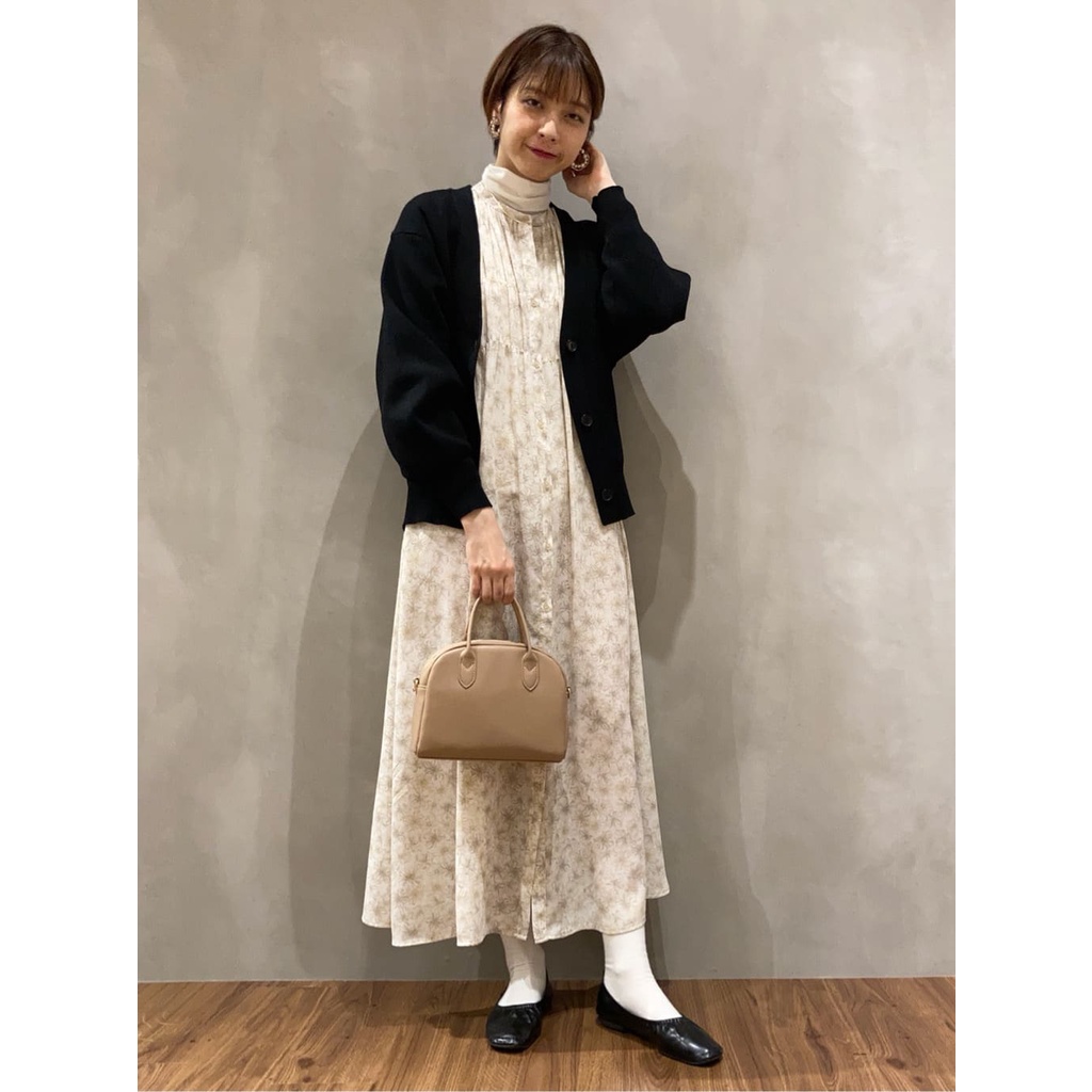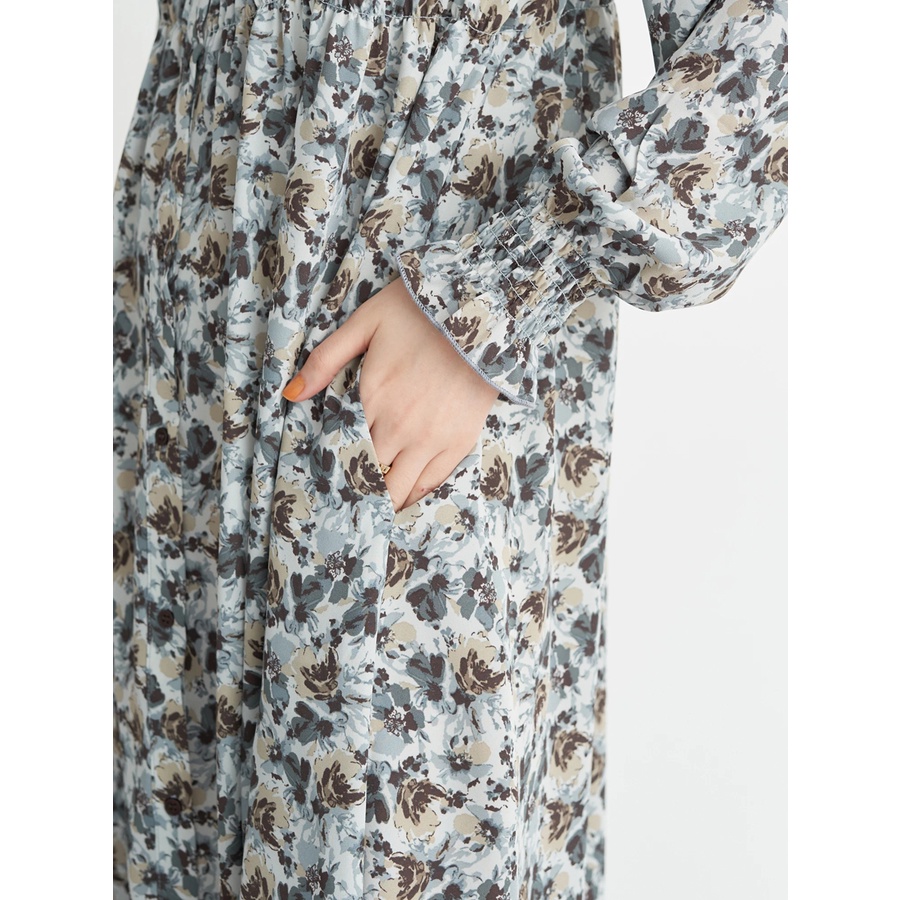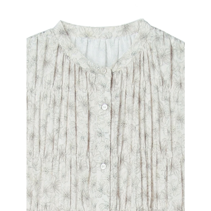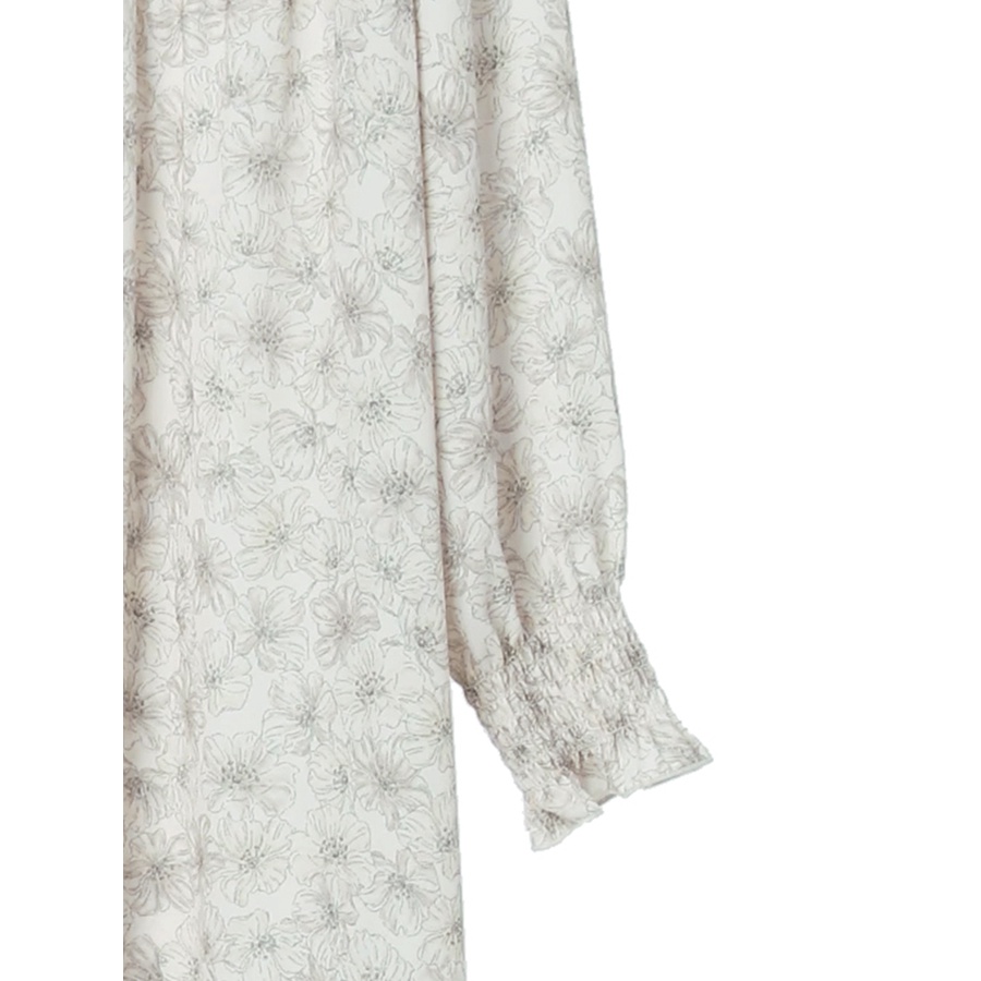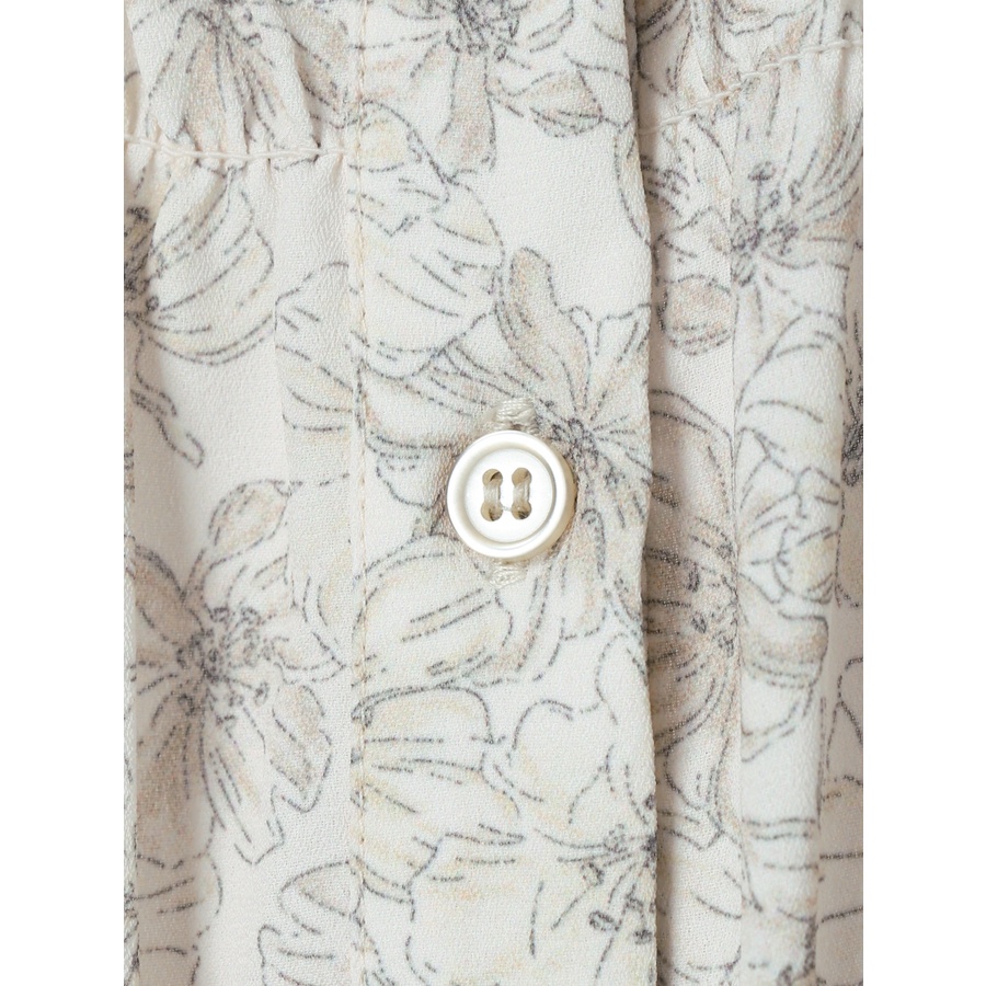 earth music&ecology 印花圖案抓摺開襟長袖洋裝(1B21L0H0640)米色F|淡青色Fearth music&ecology Select Store