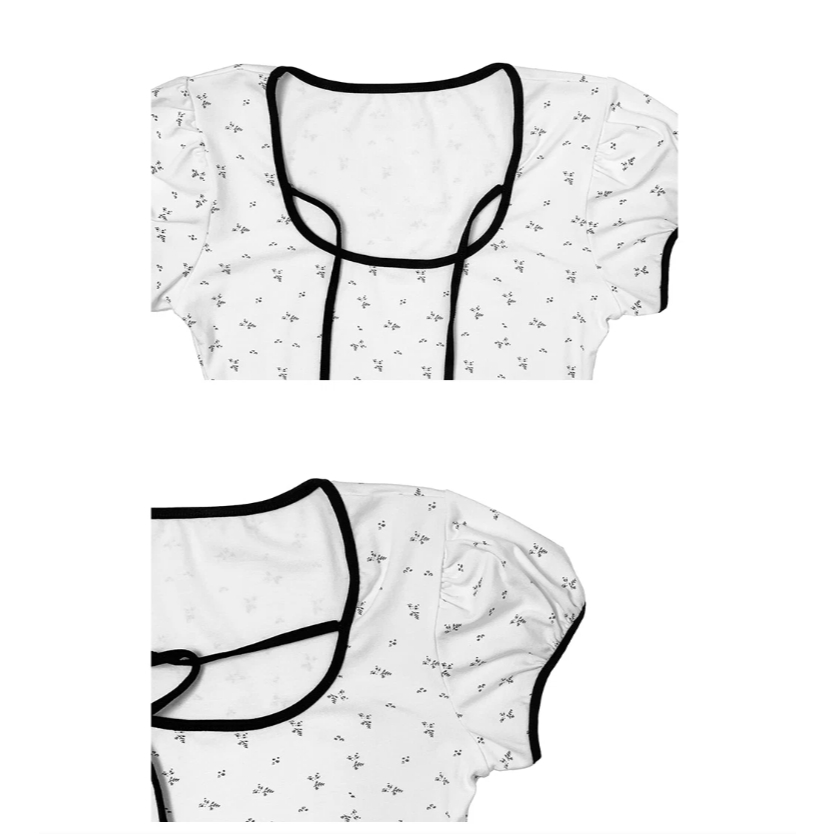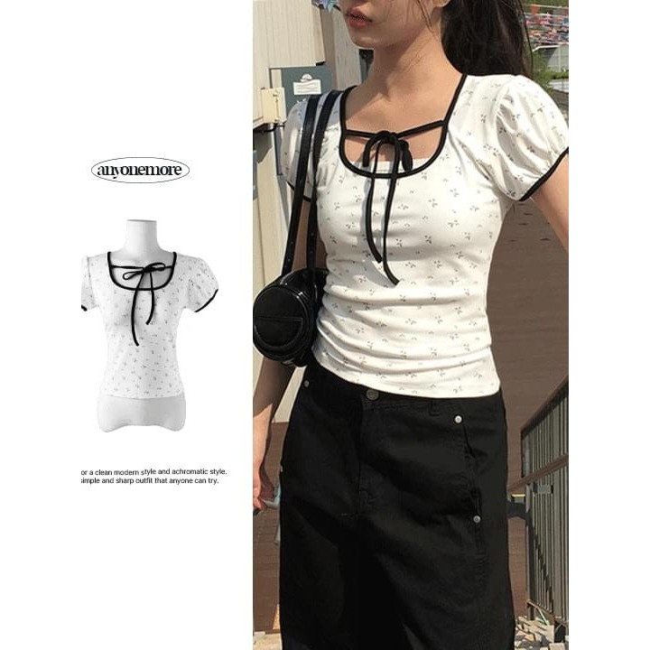 Codibook|韓國 anyonemore 優雅花卉緞帶澎袖U領短版T恤[預購]短袖上衣 雪紡襯衫 女裝free,白色T-shirtsCodibook 韓國女裝購物平台