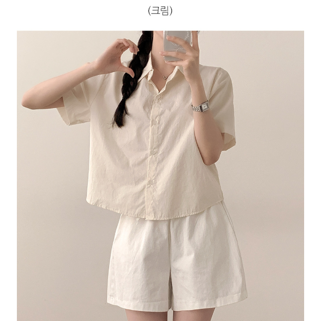 Codibook|韓國 peachmode 度假風圓釦短版短袖襯衫[預購]襯衫 女裝粉紅色,FREE|紫色,FREE|奶油色,FREE|黃色,FREE|卡其色,FREE|天空藍,FREE|海軍藍,FREE|象牙白,FREEShirts & BlousesCodibook 韓國女裝購物平台