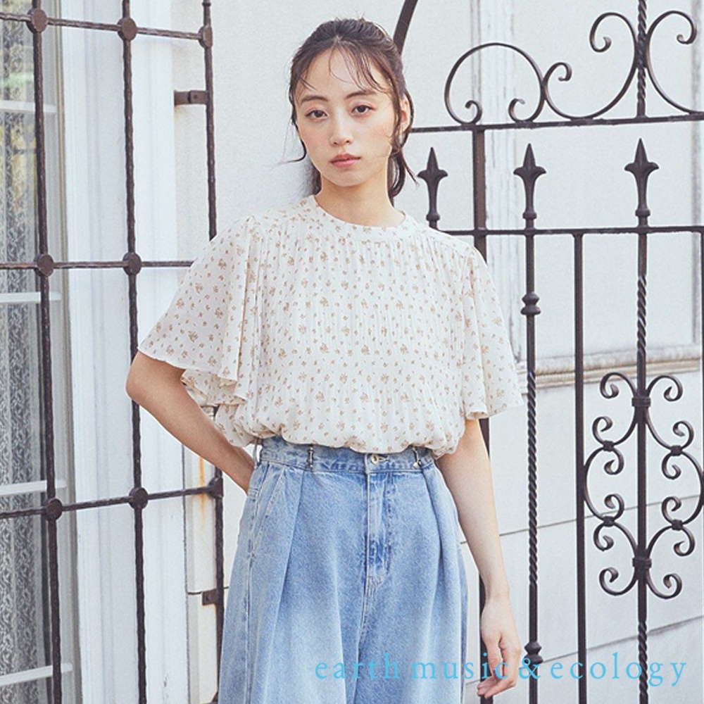 earth music&ecology 素面/素花圖案褶飾寬袖剪裁上衣(01000827300)象牙色F|黑色F|米底花紋F|黑底花紋FT-shirtsearth music&ecology Select Store