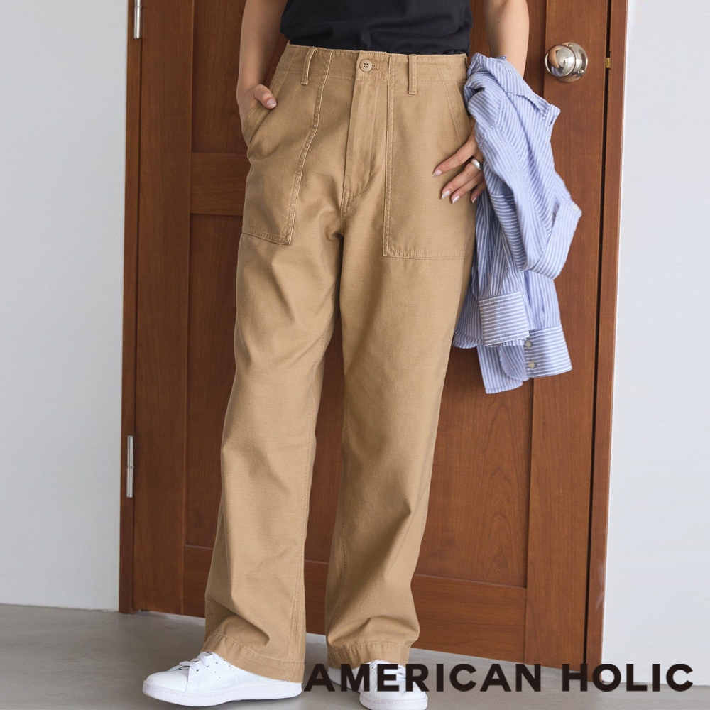 AMERICAN HOLIC 定番直筒剪裁純棉休閒長褲(HA43L0F1100)米色S|米色M|米色L|卡其色S|卡其色M|卡其色LPantsearth music&ecology Select Store