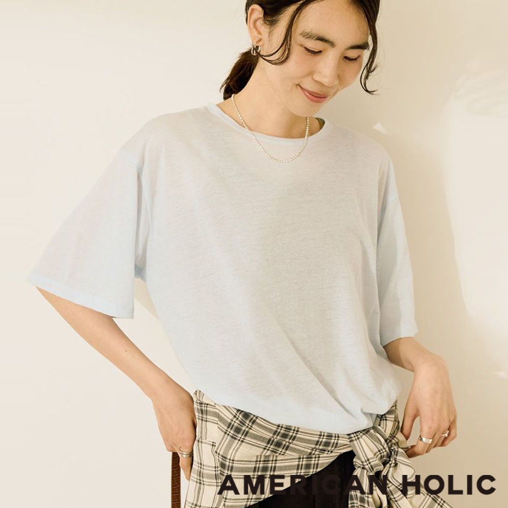 AMERICAN HOLIC 微透側開衩素面T恤(0H000051000)本白M|黑色M|棕色M|淺藍色MT-shirtsearth music&ecology Select Store