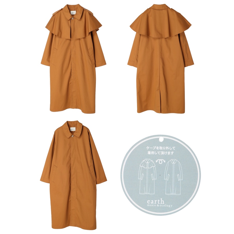 earth music&ecology 2WAY可拆式斗篷設計長版風衣外套(1L23L0Y0100)米色F|駝色F|藍色FJacketsearth music&ecology Select Store