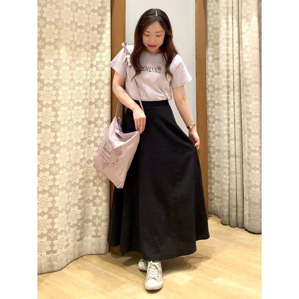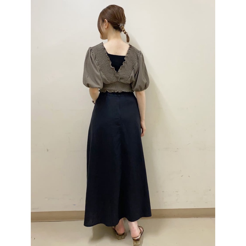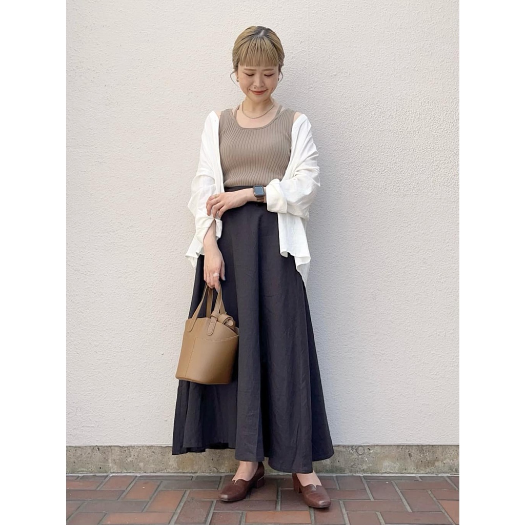 earth music&ecology 素面亞麻混紡喇叭剪裁長裙(1L22L0L0640)