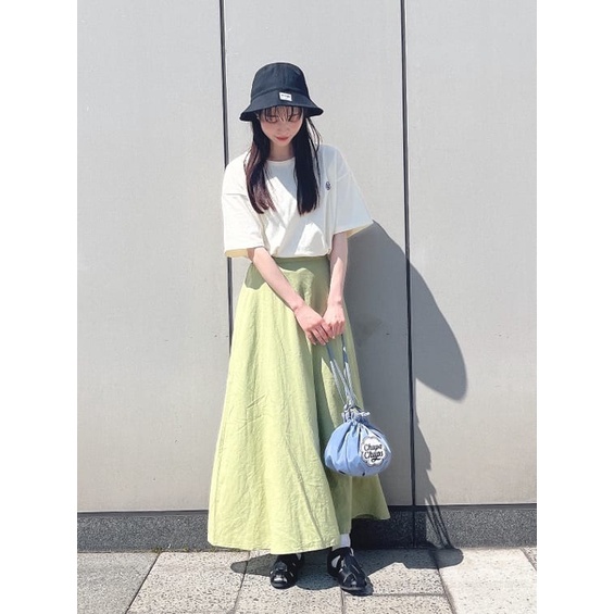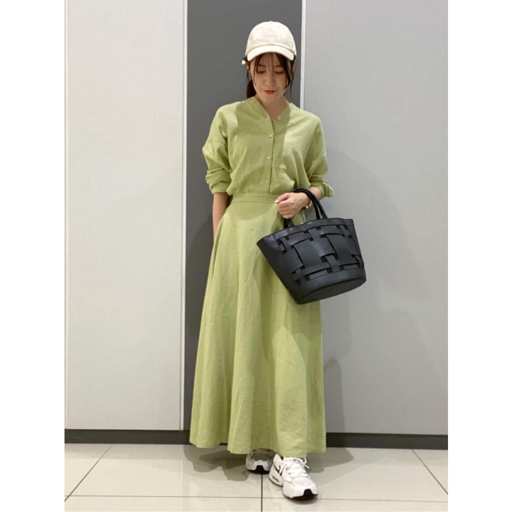 earth music&ecology 素面亞麻混紡喇叭剪裁長裙(1L22L0L0640)黑色M|萊姆綠Mearth music&ecology Select Store