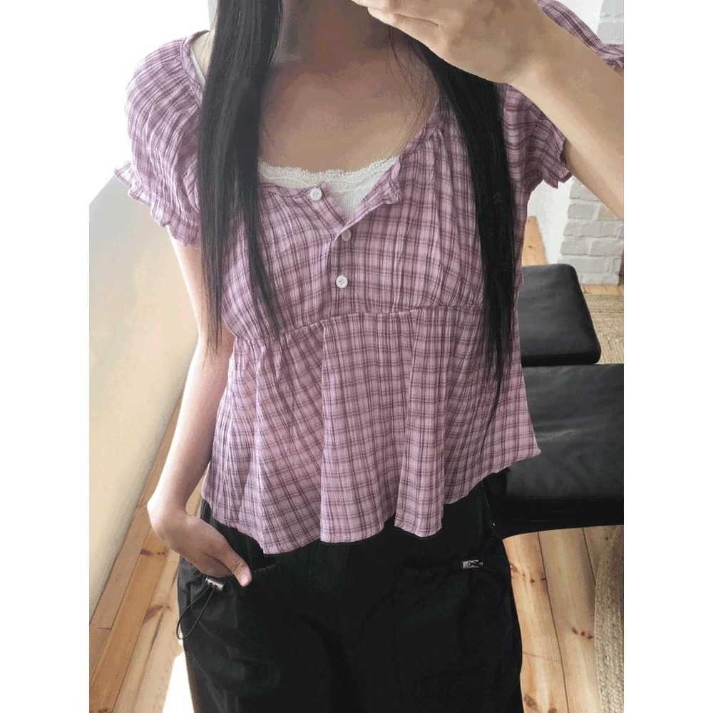 Codibook|韓國 wonderwonder 格紋澎袖抓褶襯衫[預購]雪紡襯衫 女裝藏青,FREE|粉紅色,FREEShirts & BlousesCodibook 韓國女裝購物平台