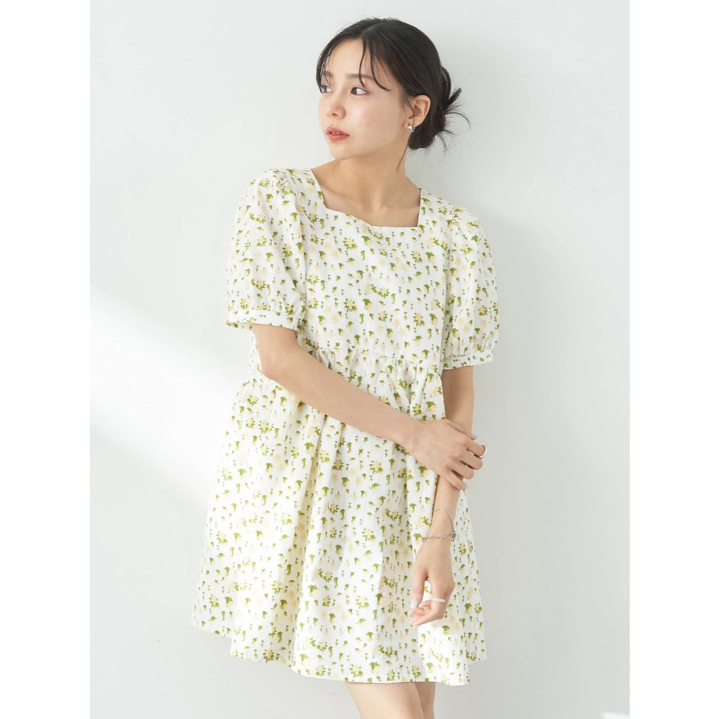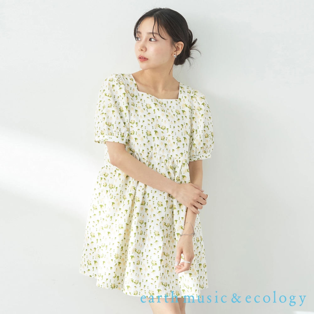 earth music&ecology 碎花圖案蓬袖膝上連身洋裝(1L42L0H0800)粉紅色F|黃色F|藍色Fearth music&ecology Select Store