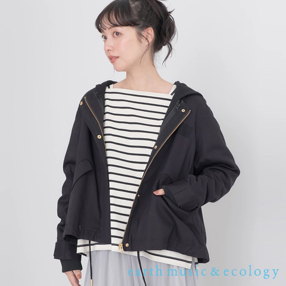 earth music&ecology 【SET ITEM】無領束腰軍裝外套+素面連帽外套(1L33L0Y0200)黑色M|黑色L|卡其色M|卡其色L|淡褐色M|淡褐色LJacketsearth music&ecology Select Store