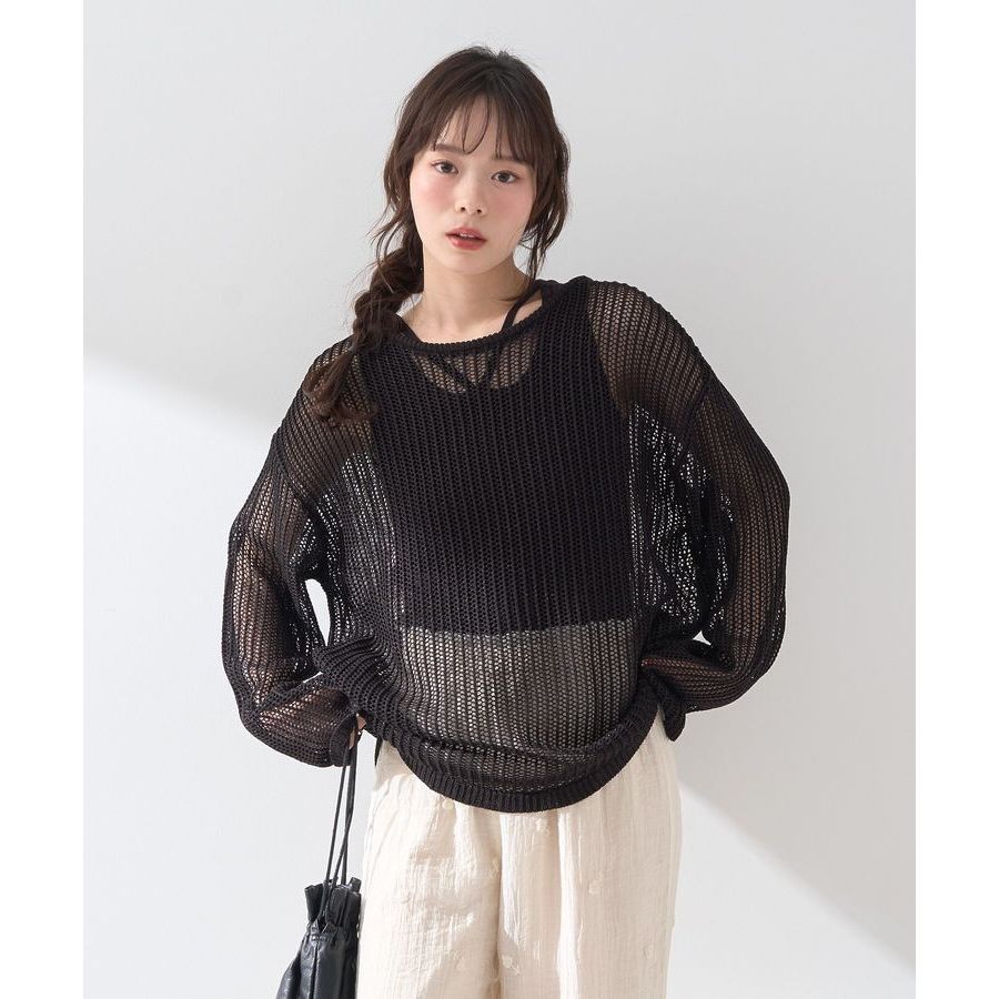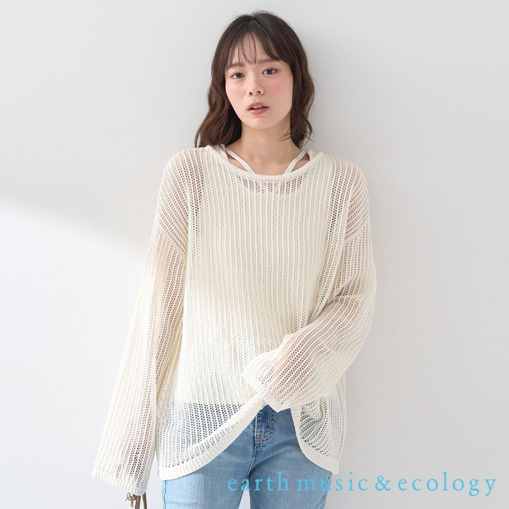 earth music&ecology 【SET ITEM】透明感網眼圓領長袖上衣+內搭背心(01000326000)象牙色F|黑色F|萊姆綠F|藍色FT-shirtsearth music&ecology Select Store