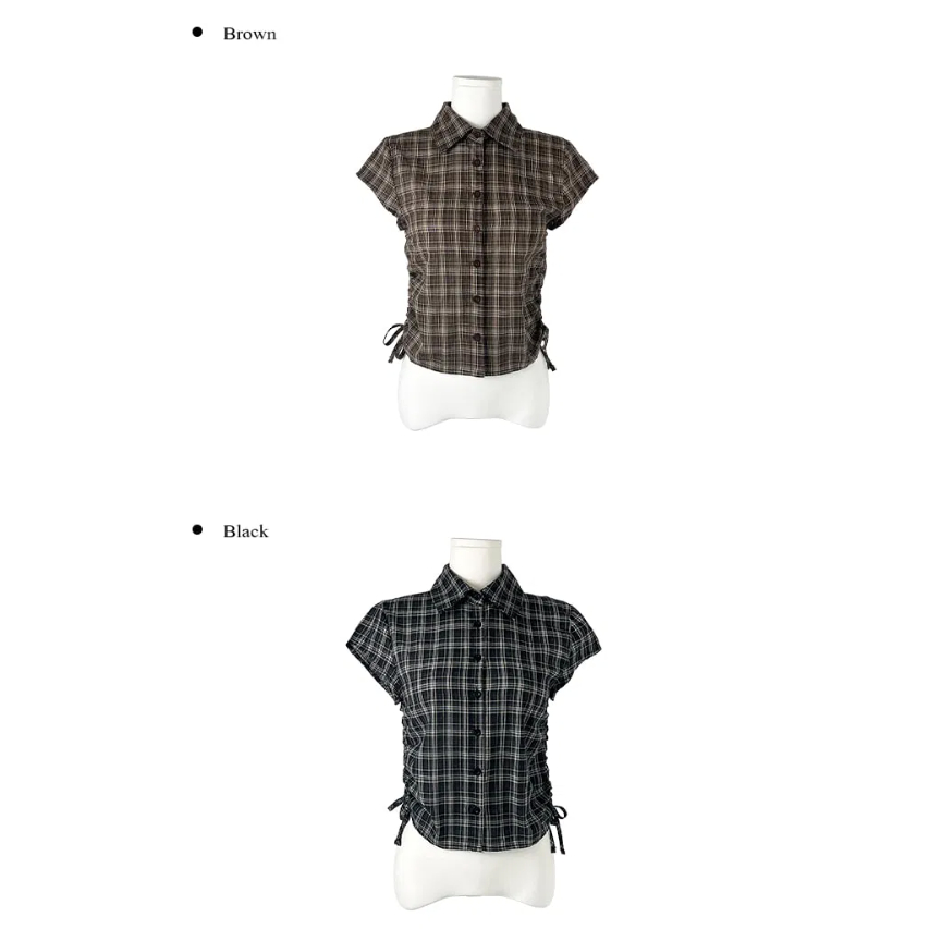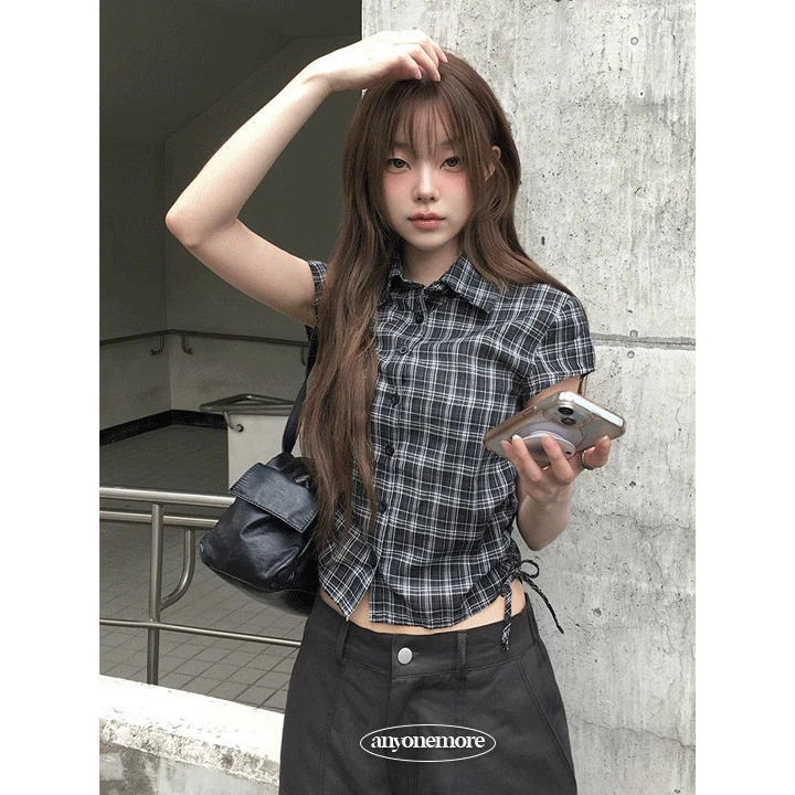 Codibook|韓國 anyonemore 條紋綁帶短袖皺褶襯衫[預購]襯衫 polo-shirt 女裝free,棕色(咖啡色)|free,黑色Shirts & BlousesCodibook 韓國女裝購物平台