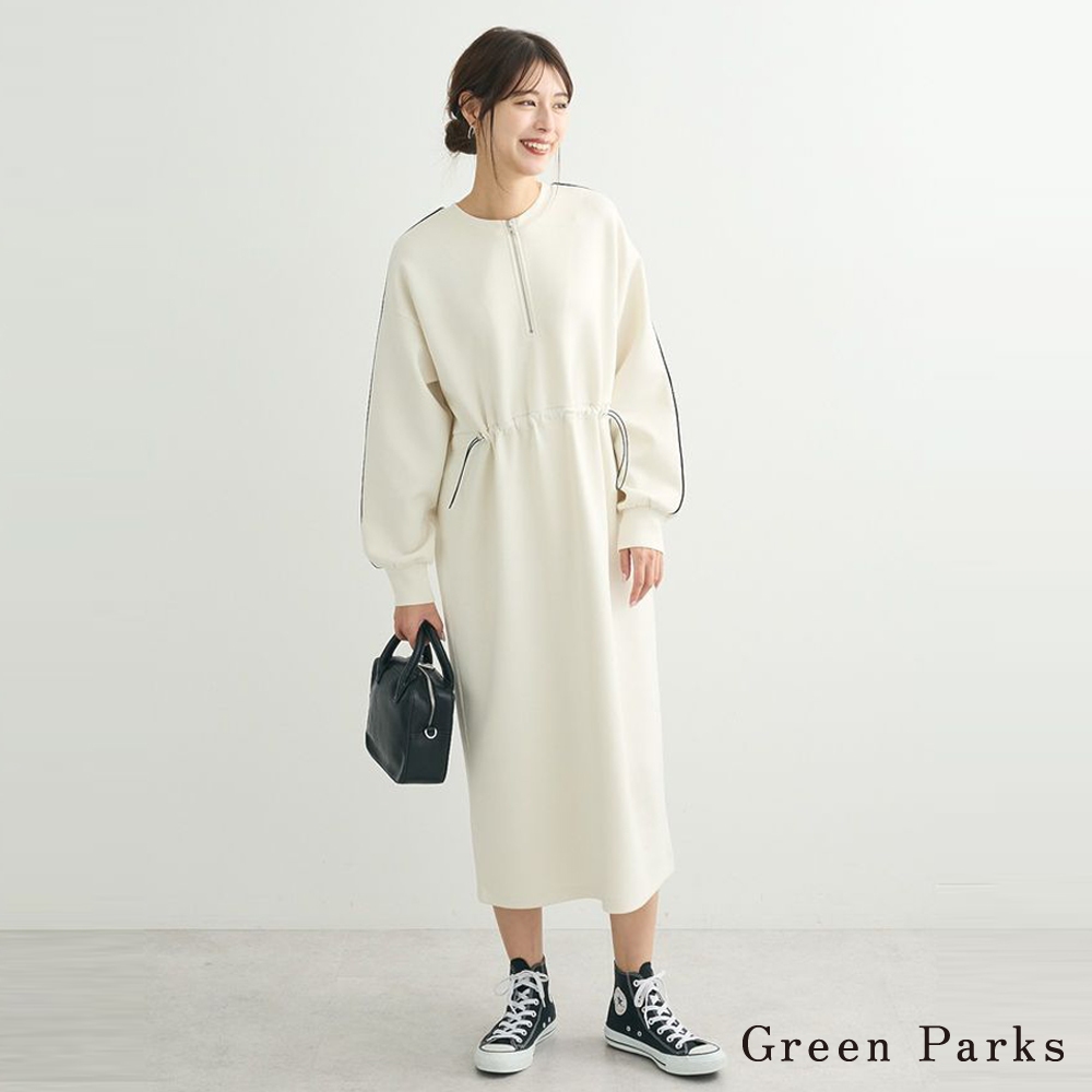 Green Parks 腰際抽繩半拉鍊運動洋裝(06000017600)象牙色F|炭灰色Fearth music&ecology Select Store