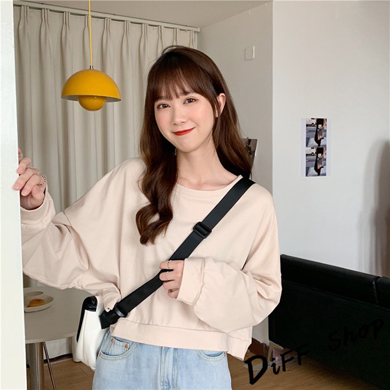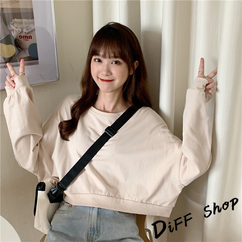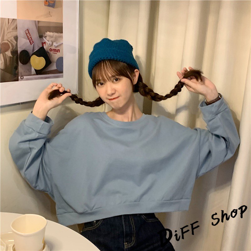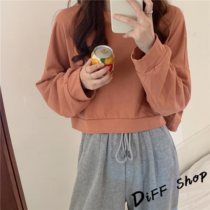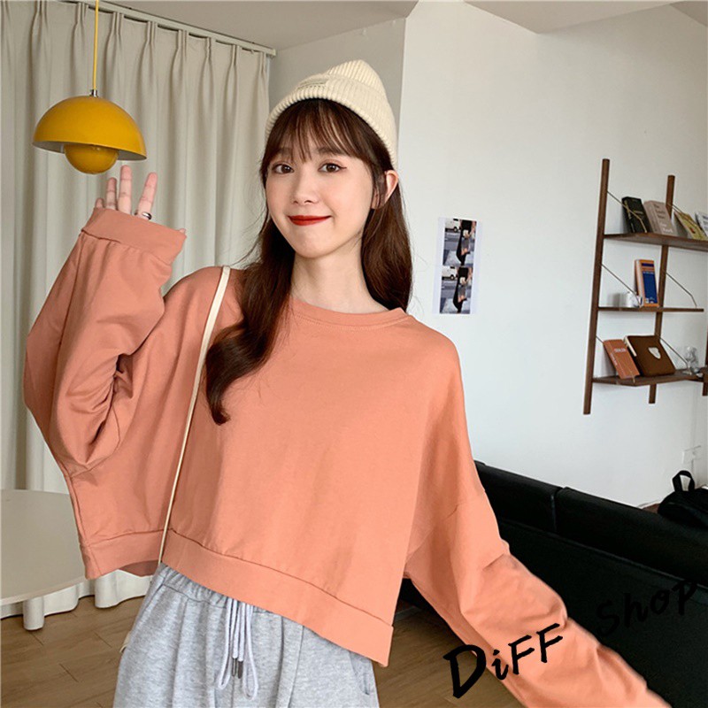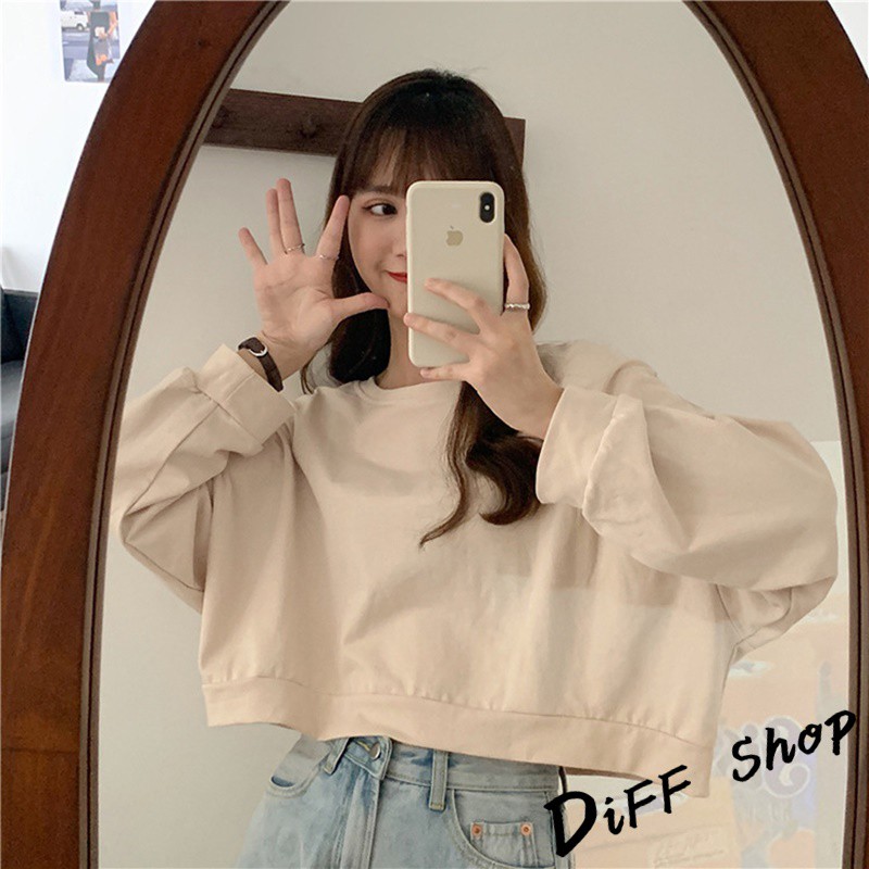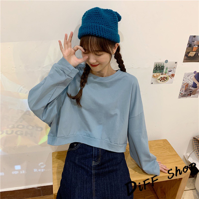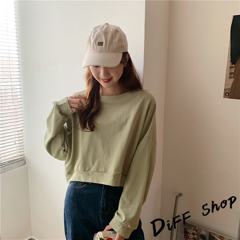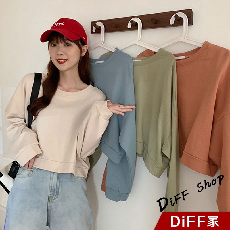 【DIFF】韓版復古色系寬鬆短版長袖上衣 短版上衣 長袖t恤 女裝 衣服 寬鬆上衣 素T 素色 冬天 大學T【W174】【W174】淺橘|【W174】杏色|【W174】淺綠|【W174】藍色SweatshirtsDiFF shop