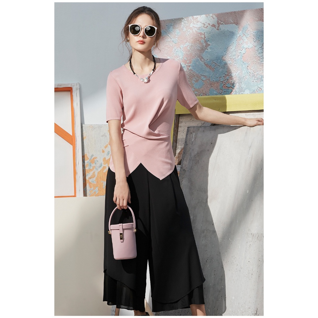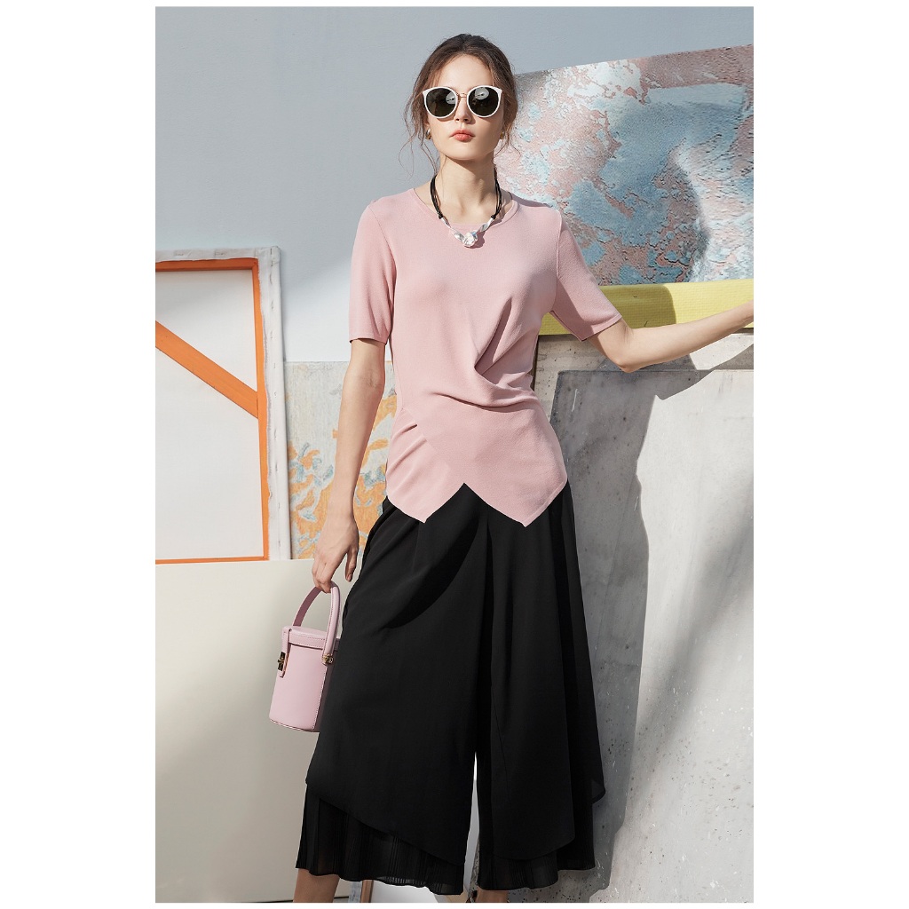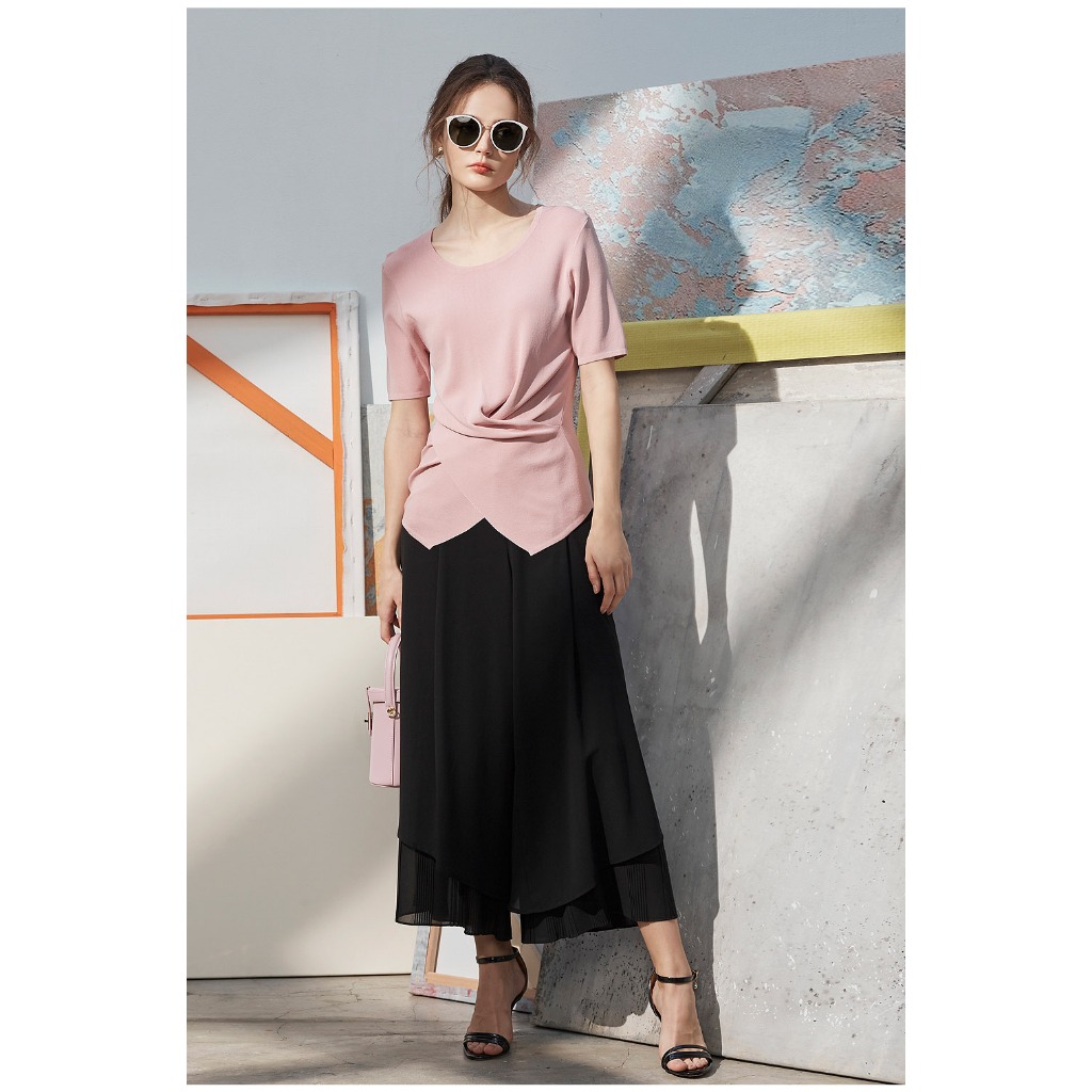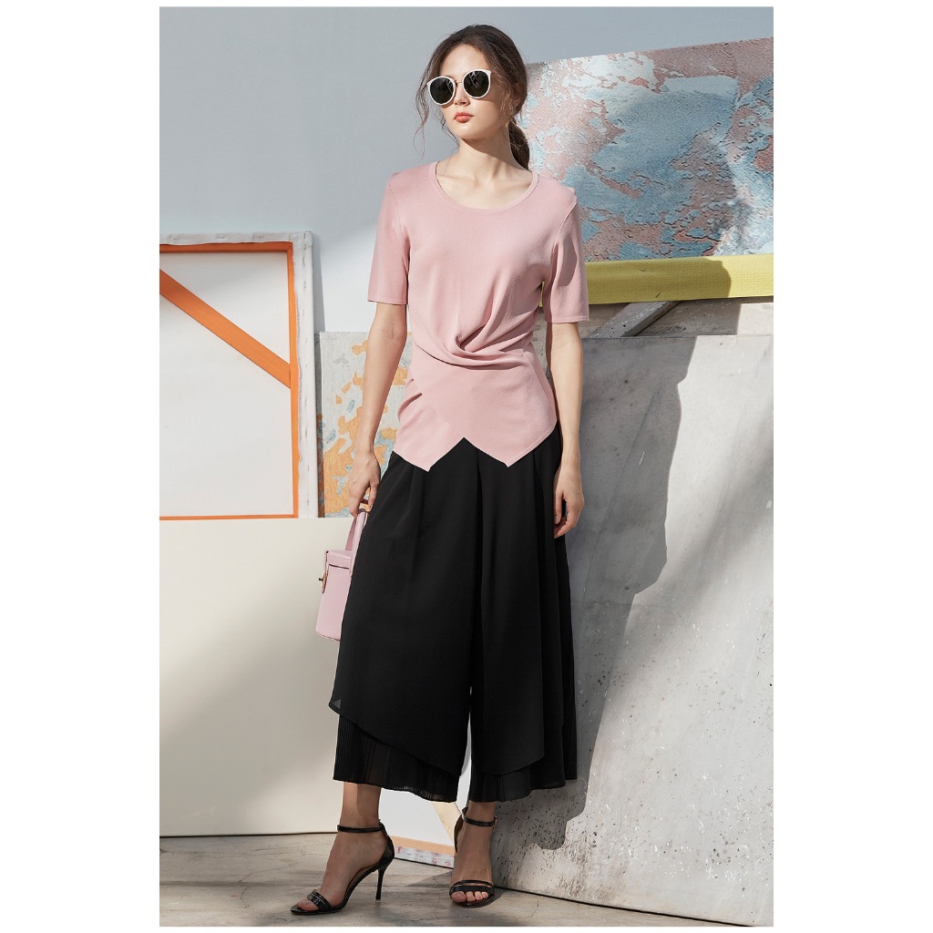 【en-suey 銀穗】飄逸百褶褲口寬褲 -粉/黑 4713-2501粉色,M|粉色,L|粉色,XL|黑色,M|黑色,L|黑色,XLPantsen-suey 銀穗