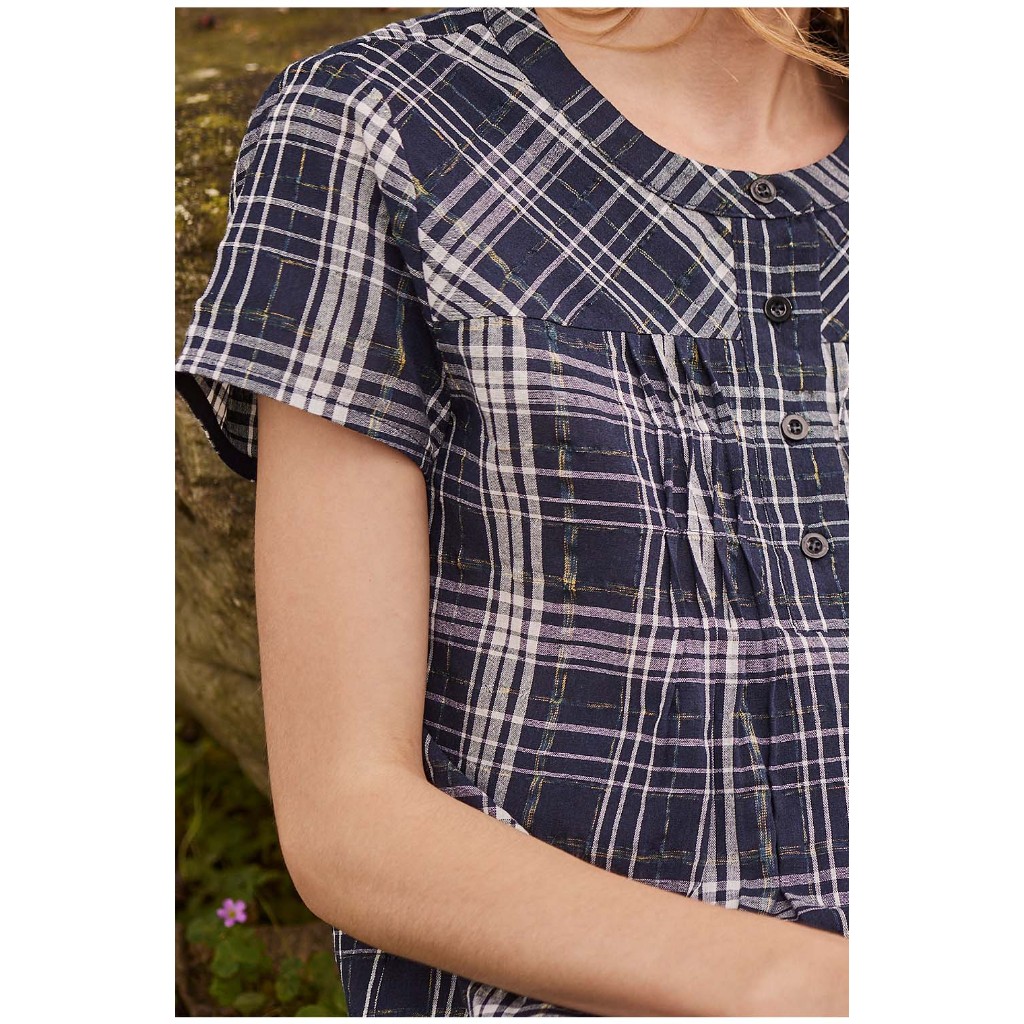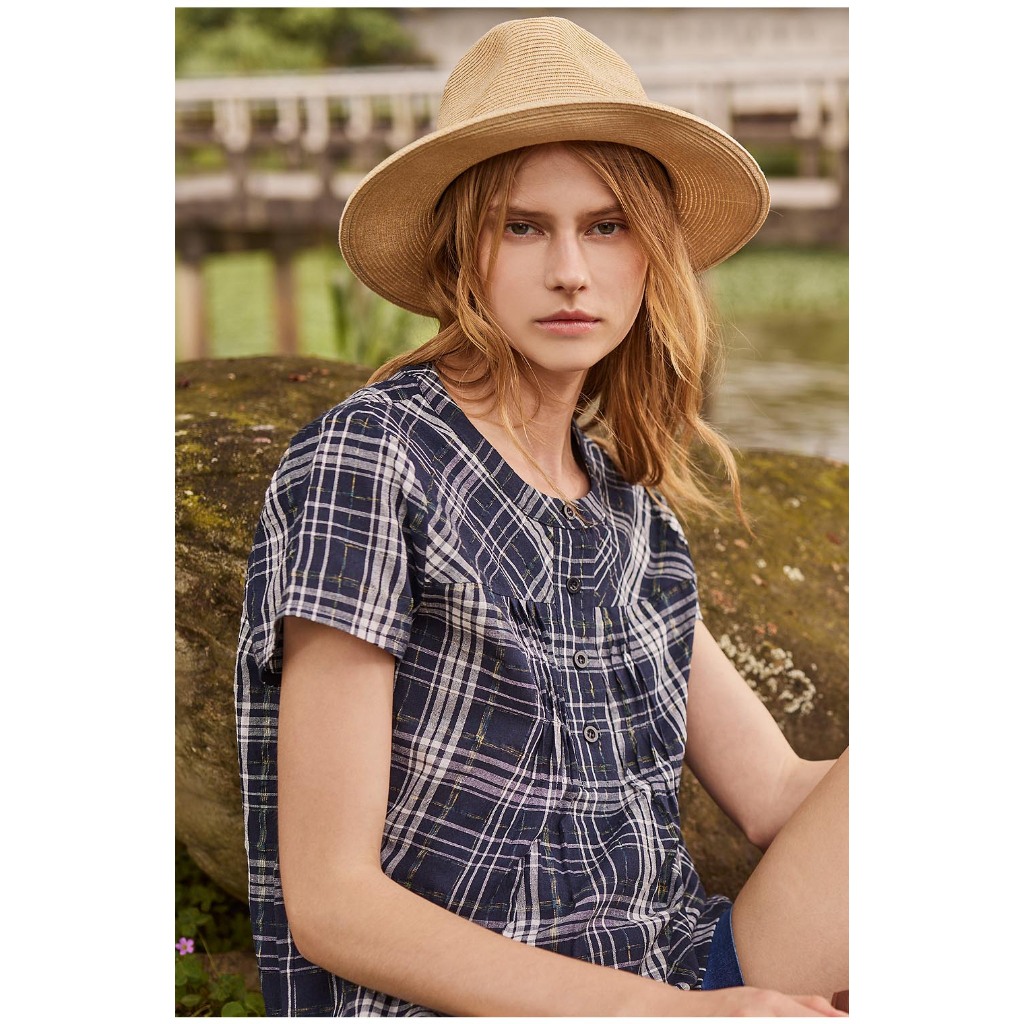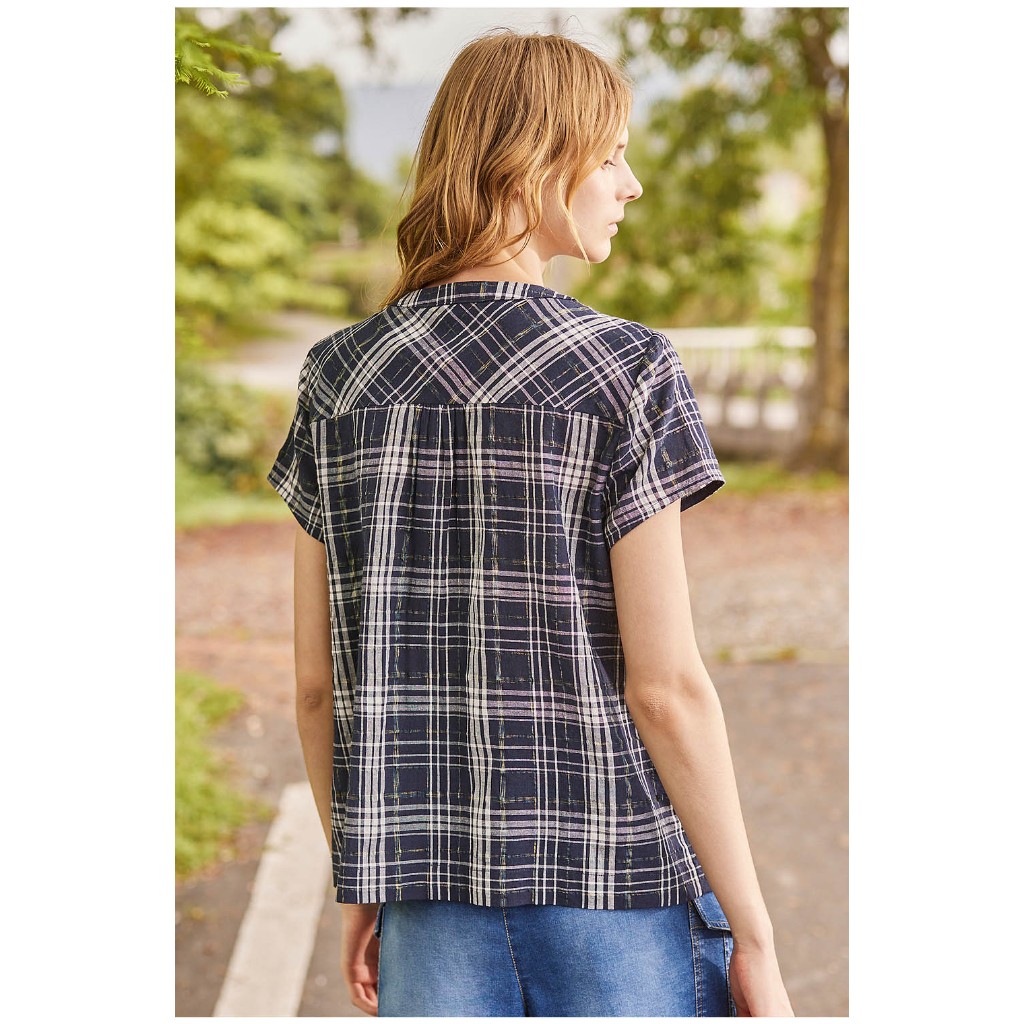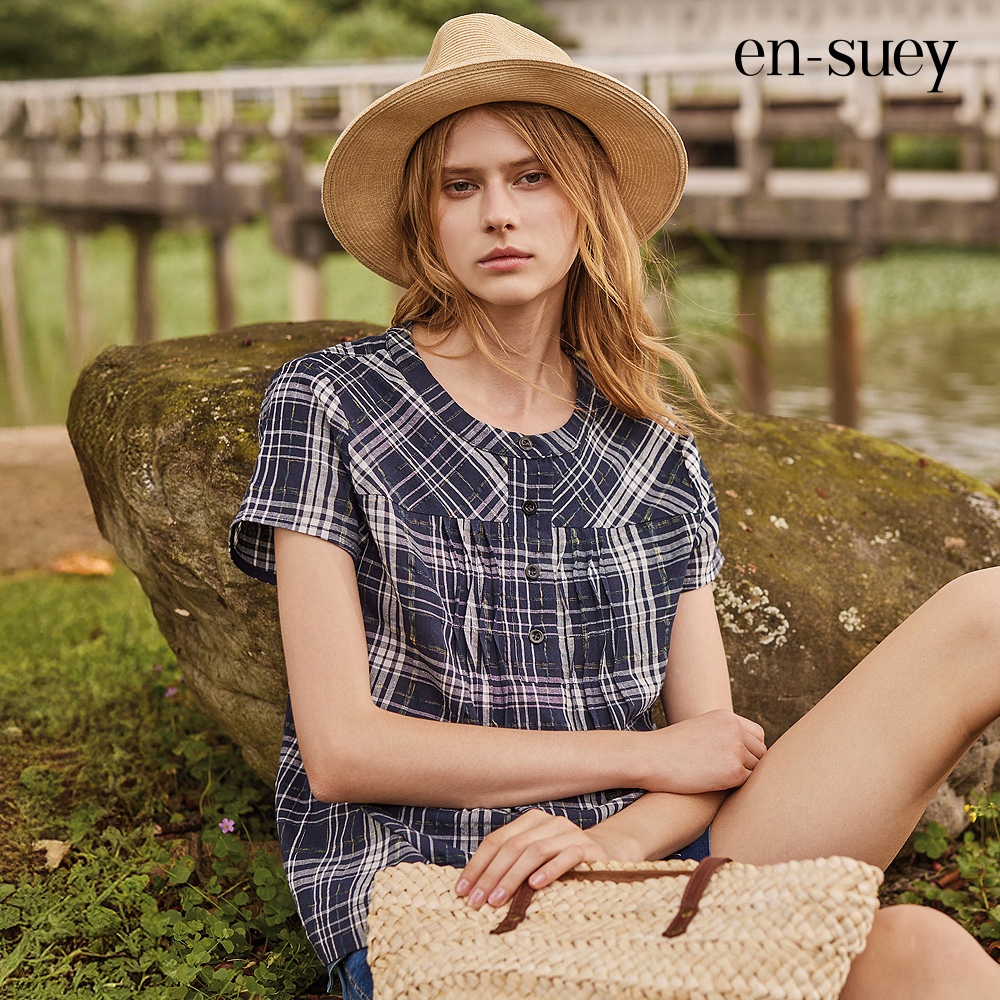 【en-suey 銀穗】剪接格紋波浪平塔克上衣 – 藍 5213-1112藍,M|藍,L|藍,XLOthersen-suey 銀穗