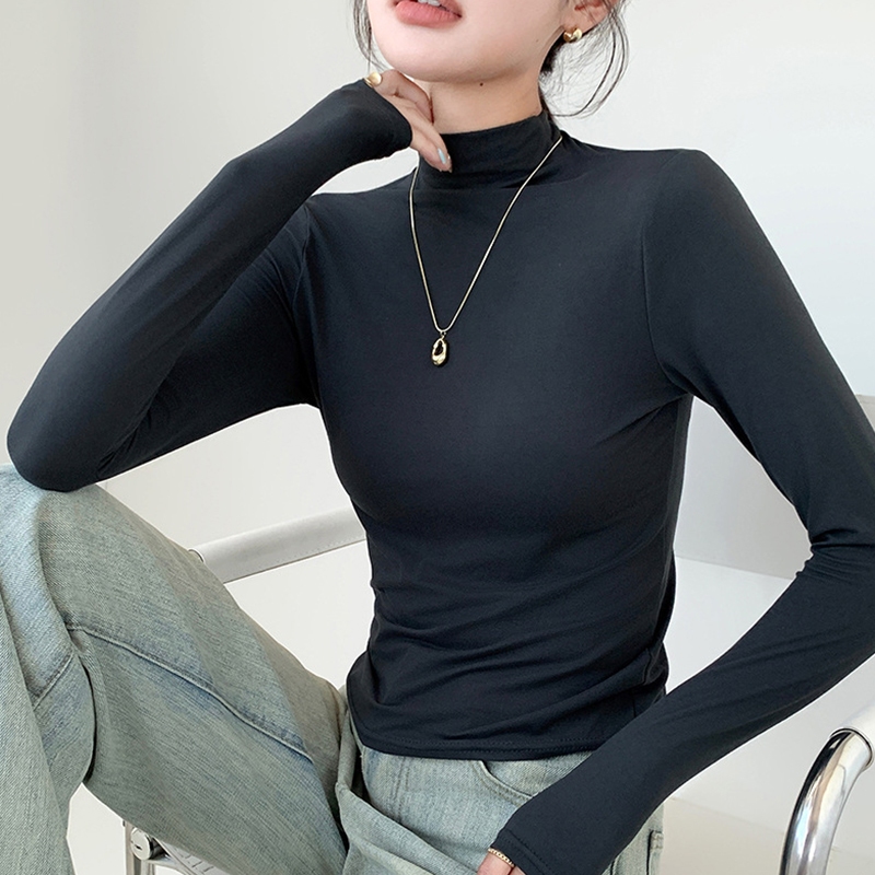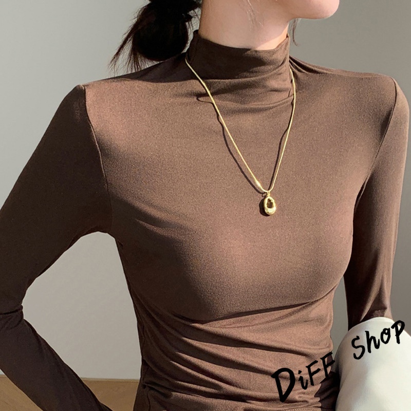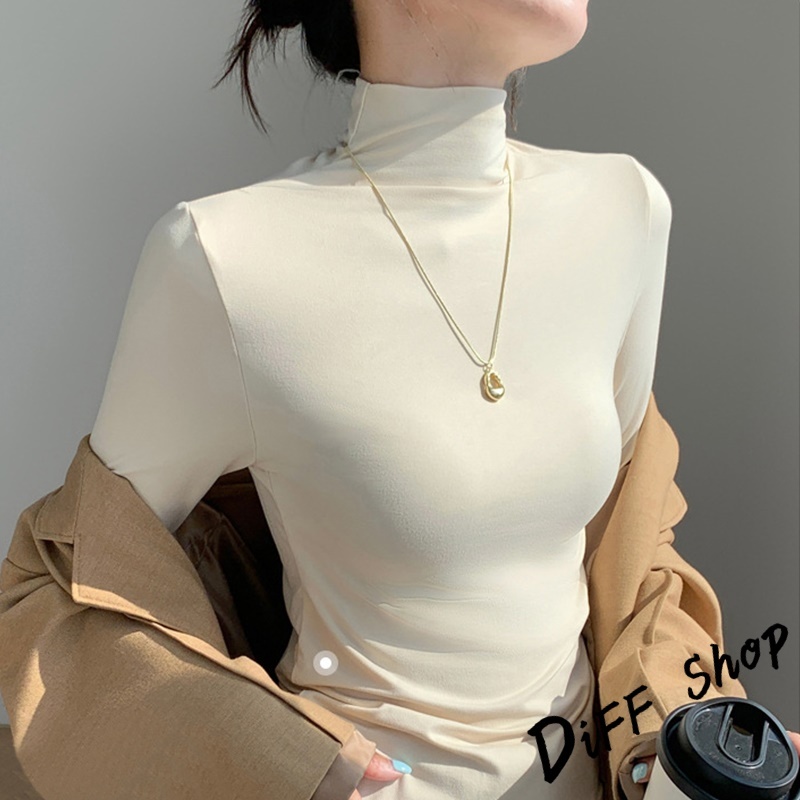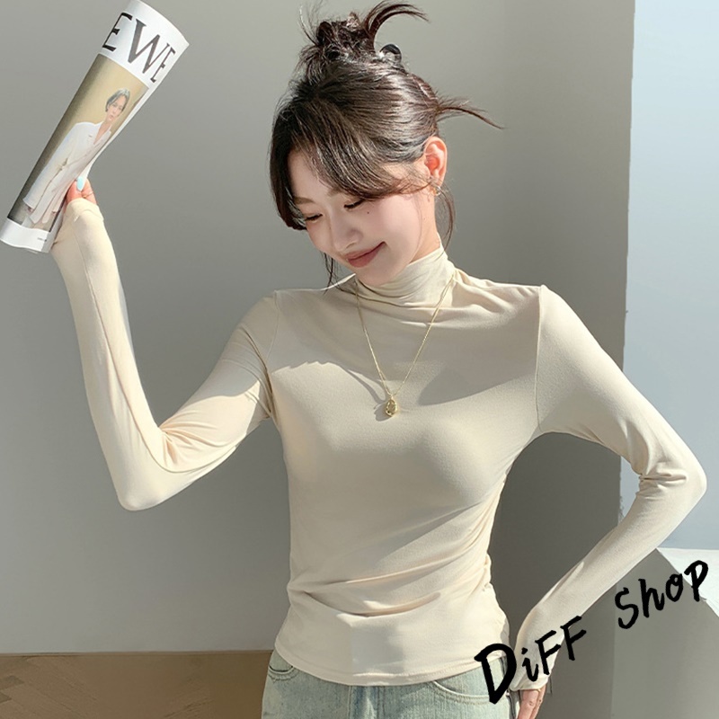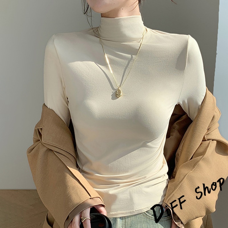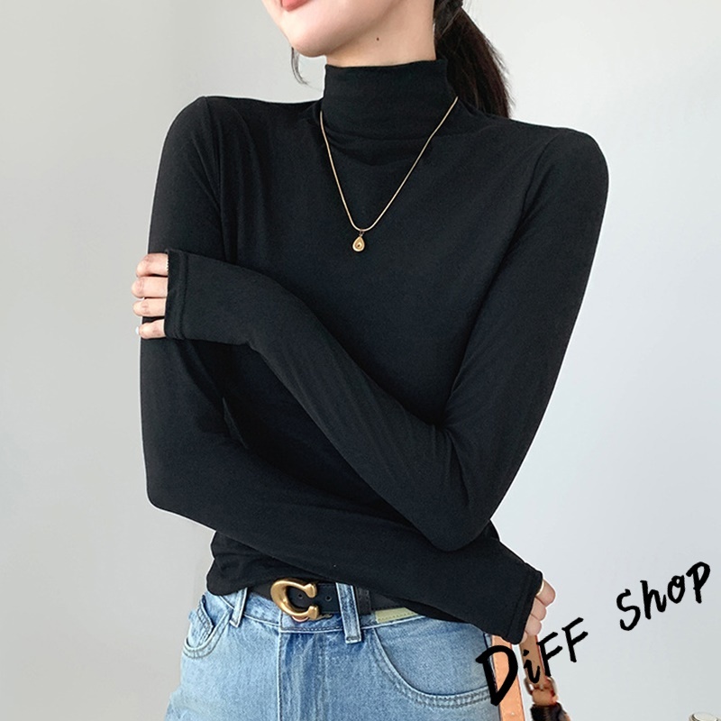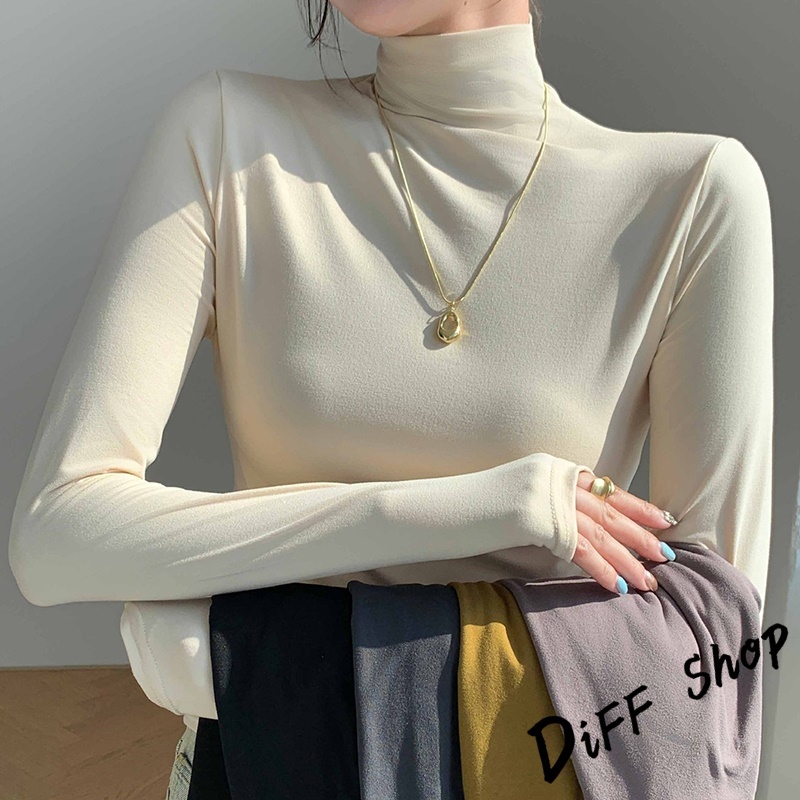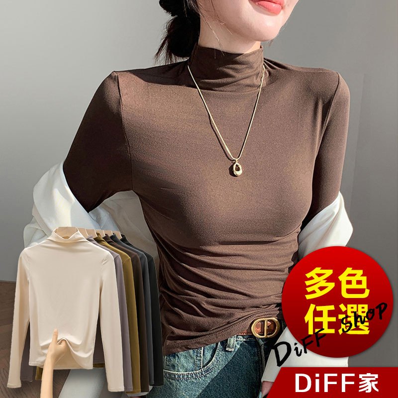 【DIFF】韓版半高領內搭親膚高彈長袖上衣 衣服 長袖t恤 保暖上衣 秋天女裝 冬天女裝 發熱衣 高領內搭【W426】【W426】黑色|【W426】白色|【W426】杏色|【W426】咖色|【W426】土黃色|【W426】淺藍色|【W426】粉色|【W426】綠色|【W426】卡其色Thermal InnerwearDiFF shop