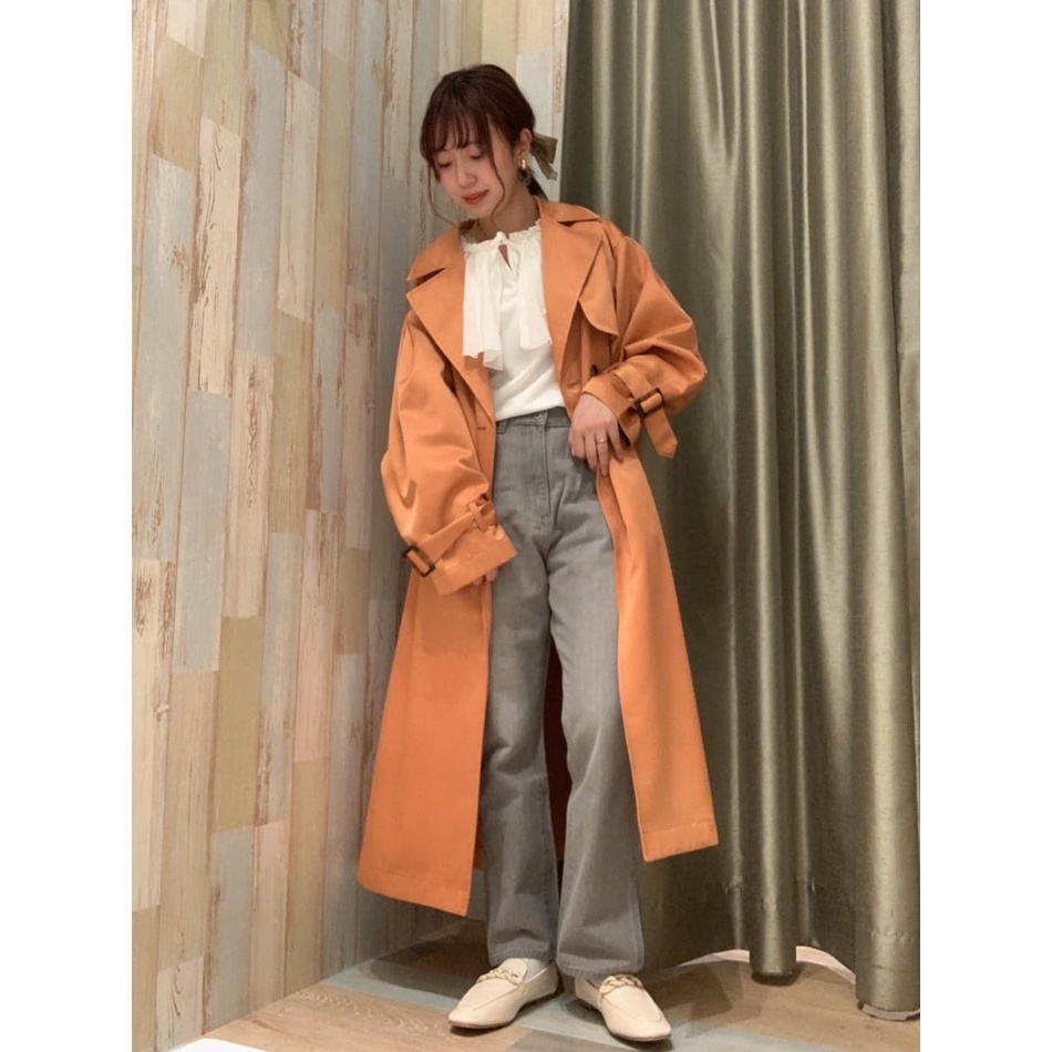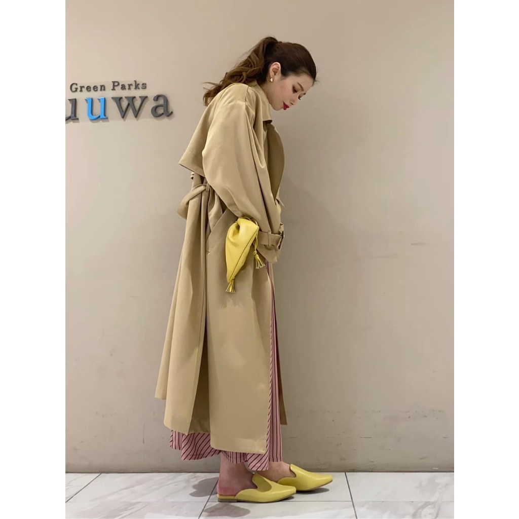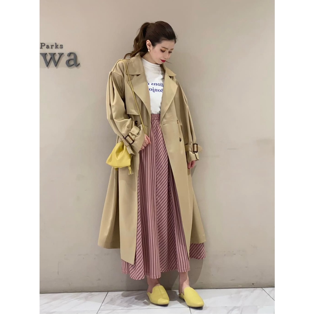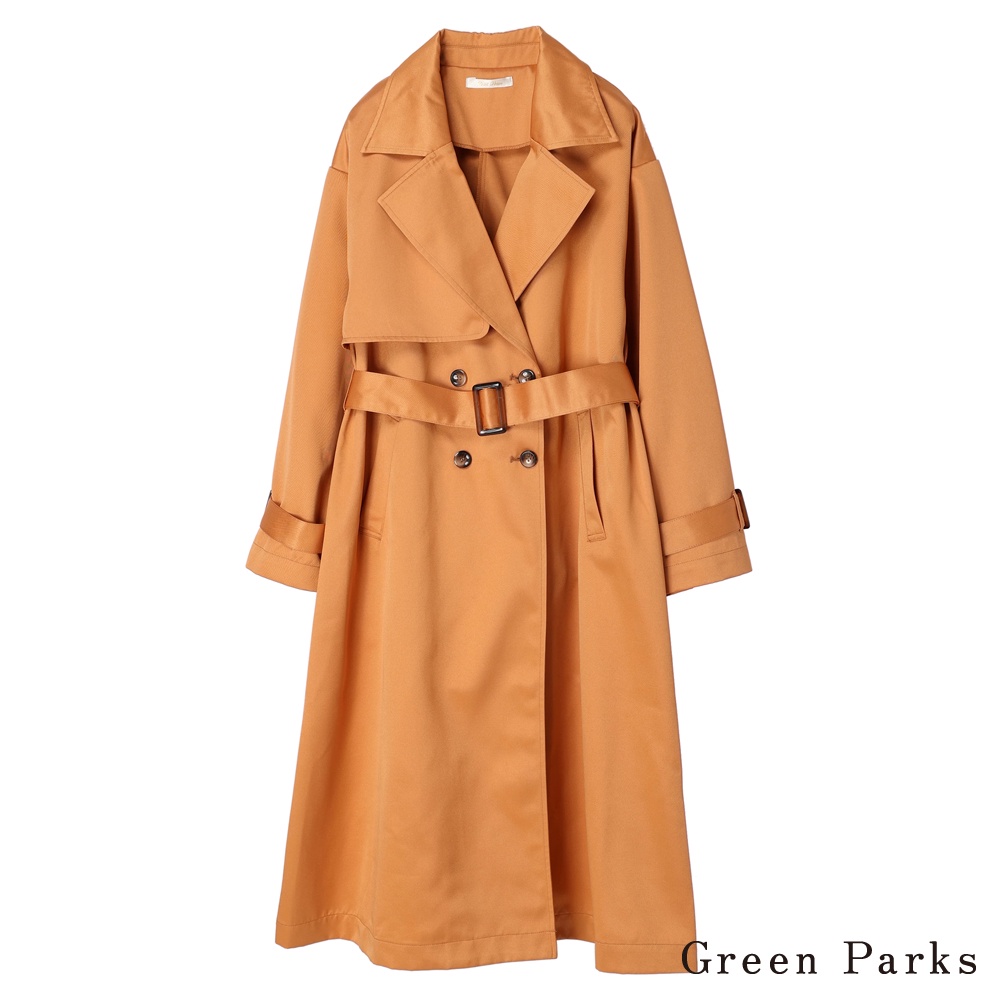 Green Parks 光澤感腰際帶翻領長版風衣-附腰帶(6P21L0Y0100)米色F|橙色F|黃色FJacketsearth music&ecology Select Store