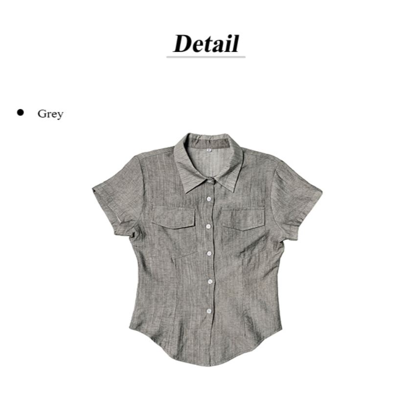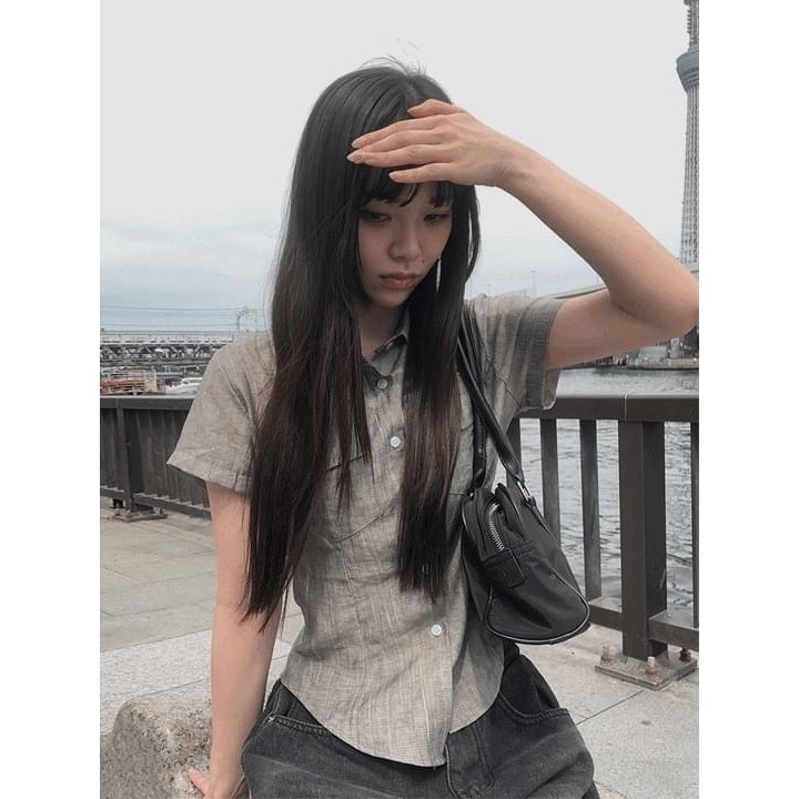 Codibook|韓國 anyonemore 夏日薄透涼爽前口袋短袖襯衫[預購]襯衫 女裝S(模特著用),灰色|M,灰色Shirts & BlousesCodibook 韓國女裝購物平台