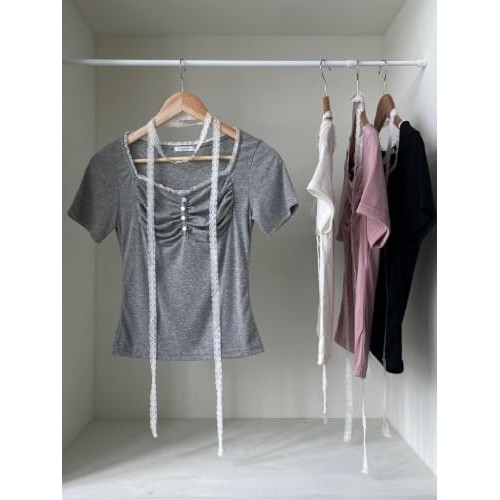 Codibook|韓國 E-PICK 蕾絲繫帶短袖T恤[預購]短袖上衣 女裝白色,Free|灰色,Free|黑色,Free|粉紅色,FreeT-shirtsCodibook 韓國女裝購物平台