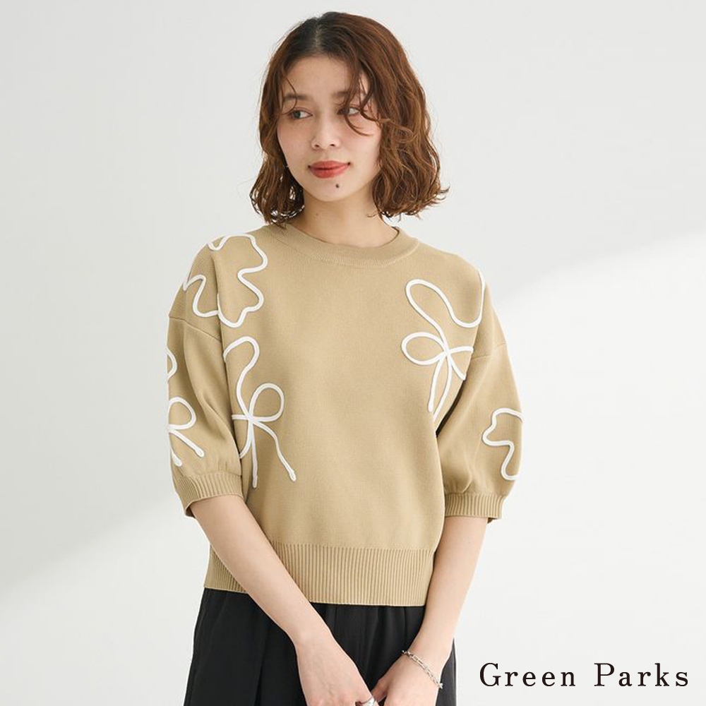 Green Parks 注目刺繡五分袖針織衫(06000526300)本白F|灰色F|黑色F|米色FT-shirtsearth music&ecology Select Store
