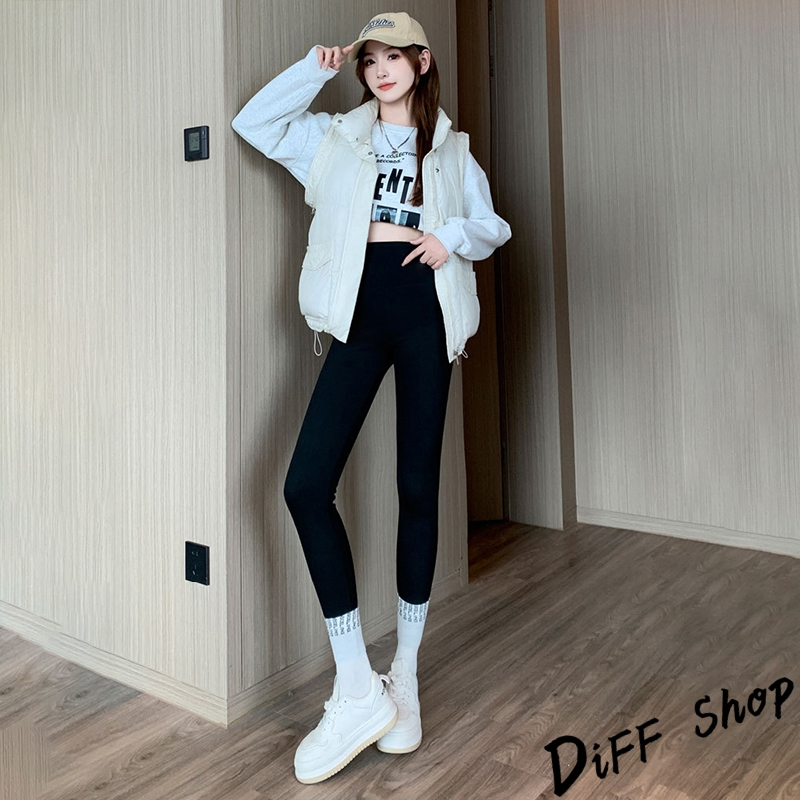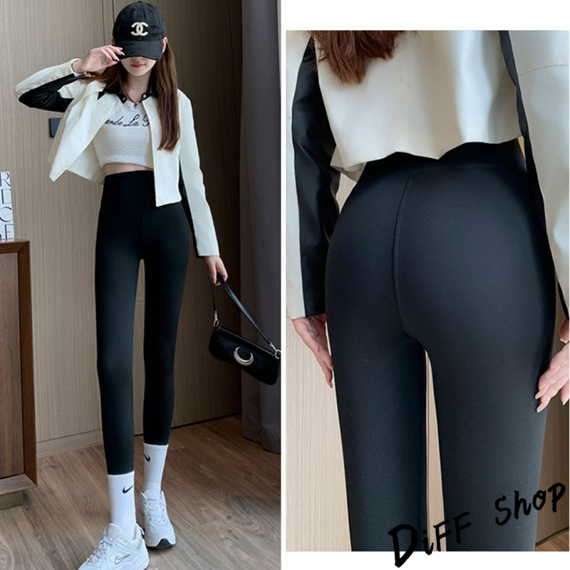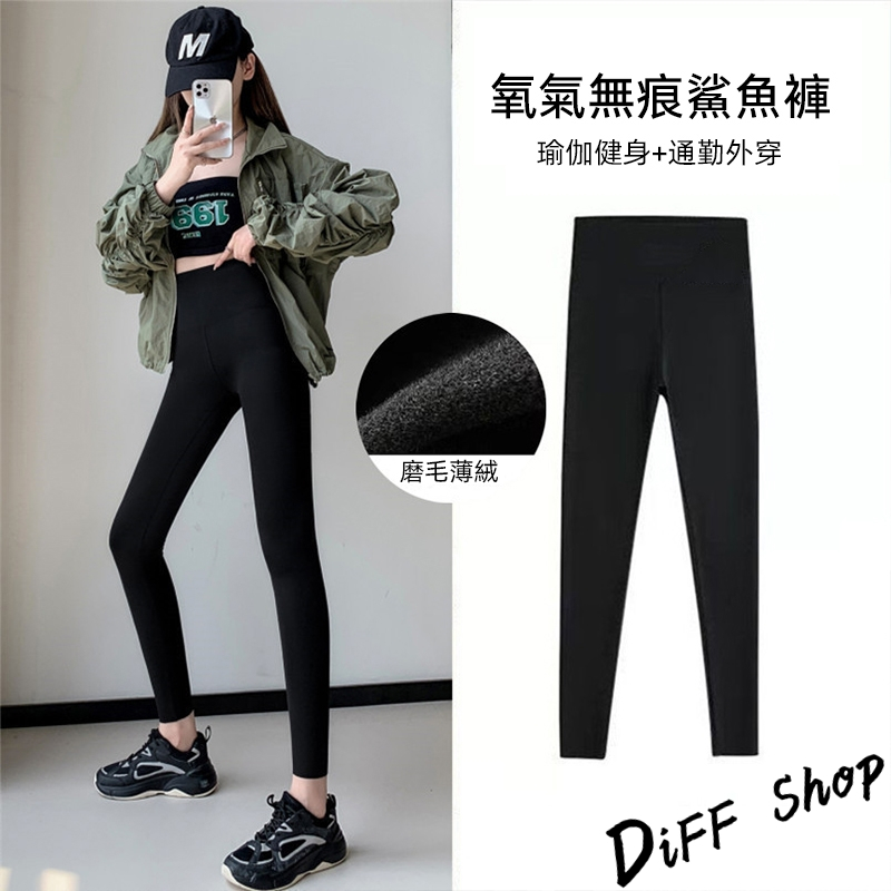 【DIFF】韓版運動風高腰彈性緊身鯊魚褲 褲子 長褲 休閒褲 女裝 高腰褲 瑜珈褲 運動褲 黑褲 發熱褲【P140】