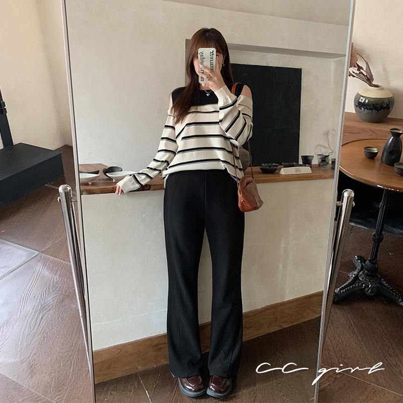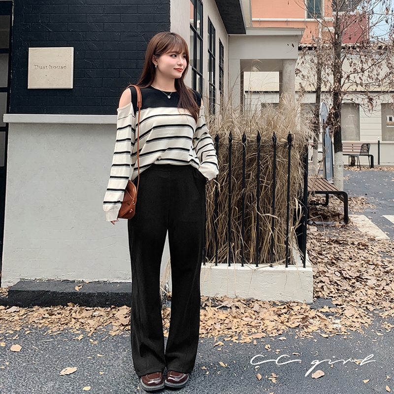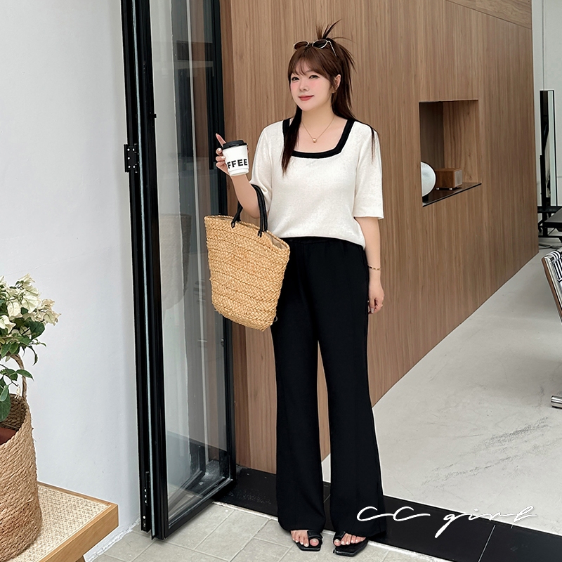 CCGIRL中大尺碼 微喇叭前車線大長腿顯瘦長褲(後鬆緊)-適M~5L《20584/32120》大尺碼女裝 中大尺碼長褲XL|2L|3L|4L|M|L|5LPantsCCGIRL中大尺碼女裝