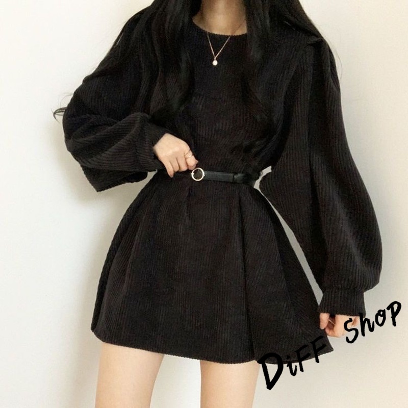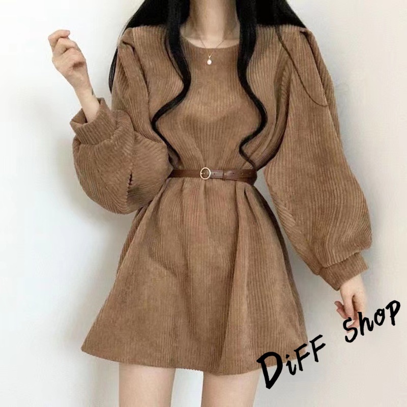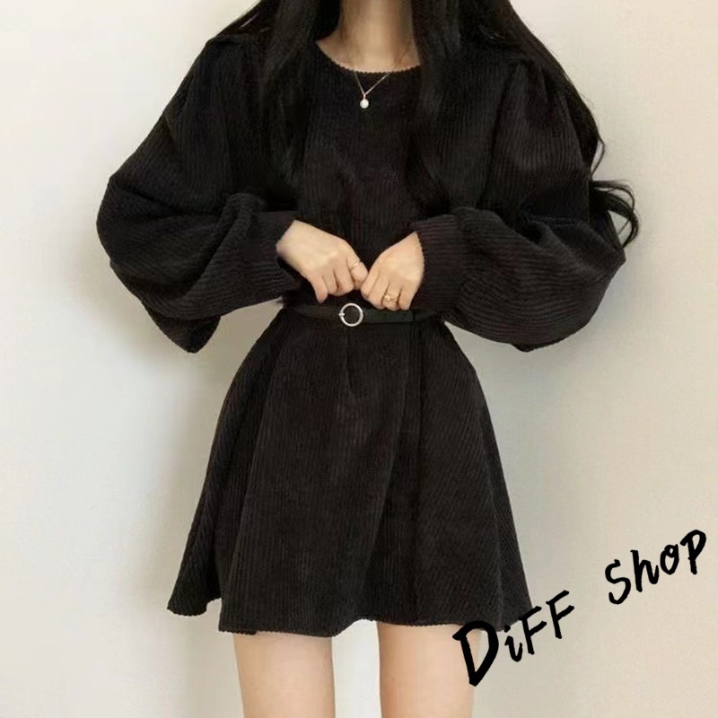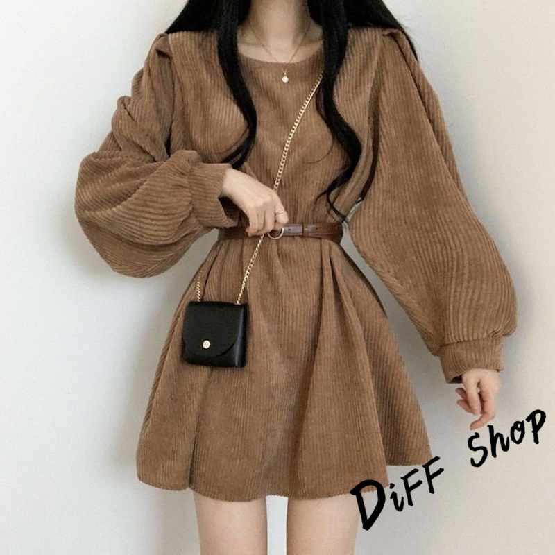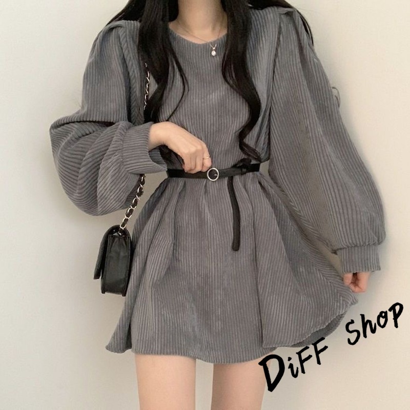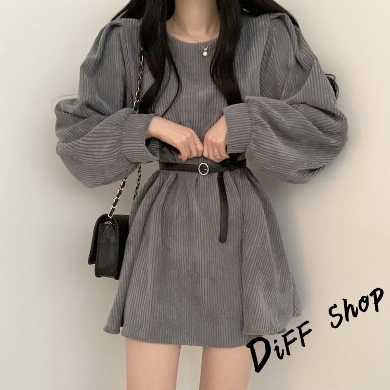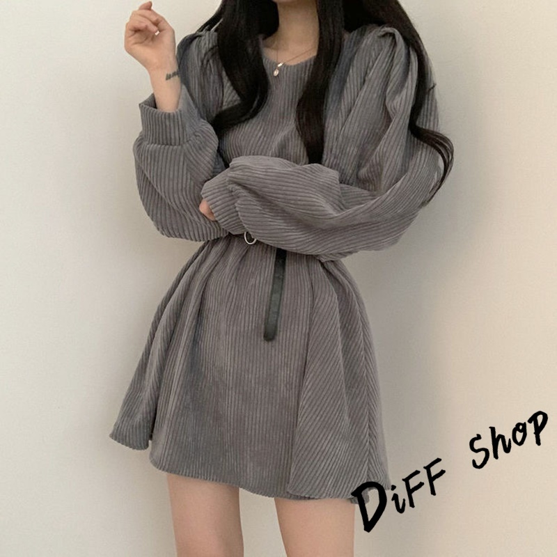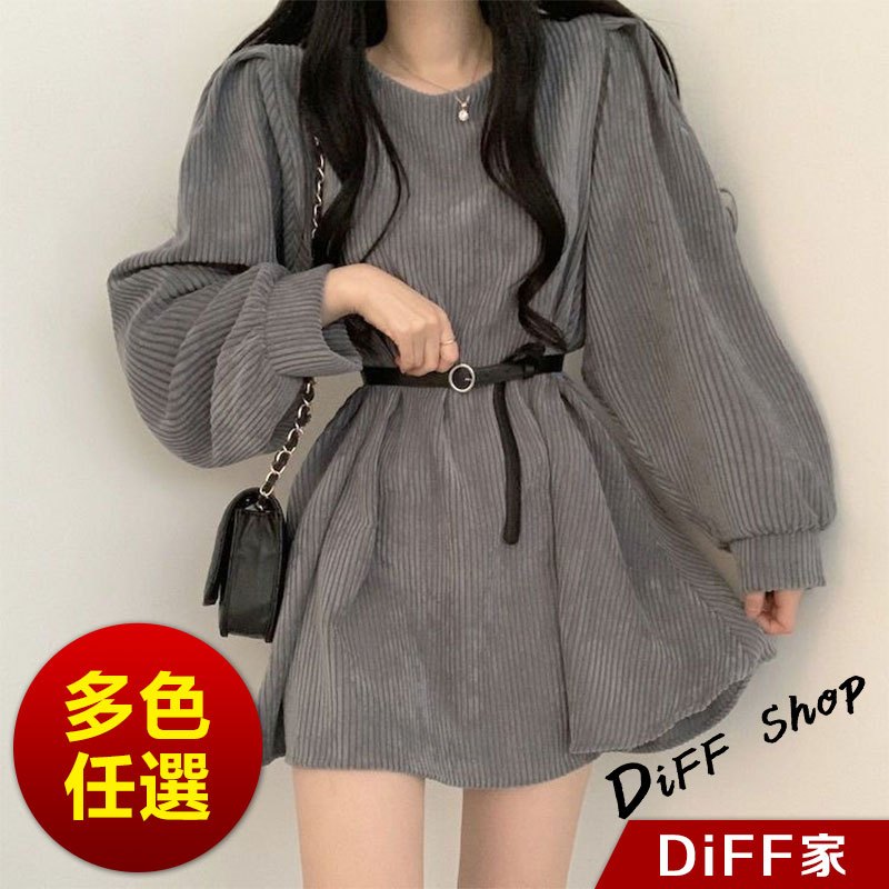 【DIFF】韓版氣質設計感小眾燈芯絨連身裙 洋裝 套裝 連衣裙 長袖上衣 女裝 衣服 針織上衣【S161】【S161】奶茶色|【S161】黑色|【S161】灰色DiFF shop